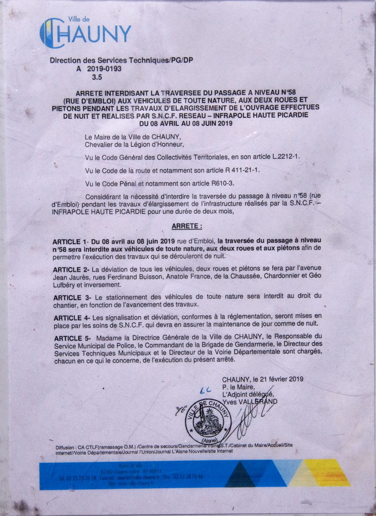 travaux de sécurisation sur le PN n°58 à Chauny (02) ligne Creil à Jeumont le 11-04-2019