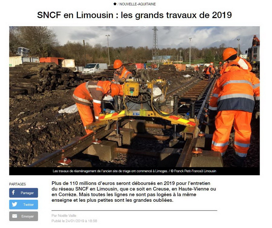 En 2019, la SNCF investira 120 millions d'euros en Limousin pour régénérer le réseau,