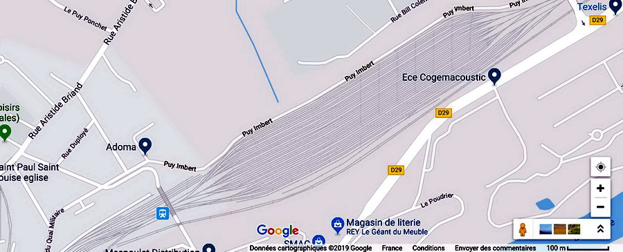 le plan de l'emprise ferroviaire à Limoges et triage du Puy-Imbert