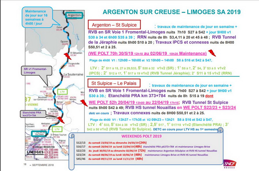 Travaux de RVB sur la ligne POLT entre Limoges PK 401,190 et Fromental PK 351,562 en direction d'Orléans entre mars et octobre 2019