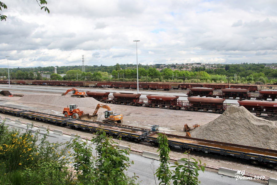Ce sont des travaux de ballasts (les remblais de gravier que l’on tasse sur les voies ferrées pour assujettir les traverses) à la gare de triage