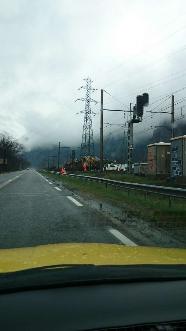 bonjour,j'ai pu prendre quelque photos en voiture aujourd’hui juste à Pontamafrey au niveau de l'ancien évitement,l'entreprise ETF est chargé des travaux