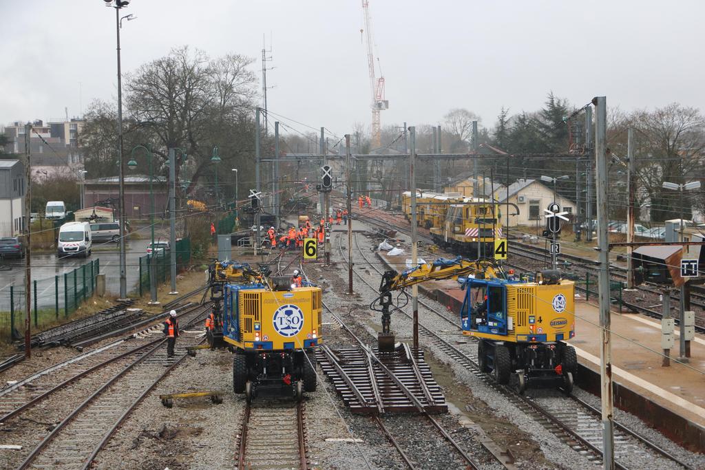 L'ensemble du chantier dans la gare de Dourdan avec le changement d'aiguillages pour le RVB du RER ligne C Paris-Dourdan