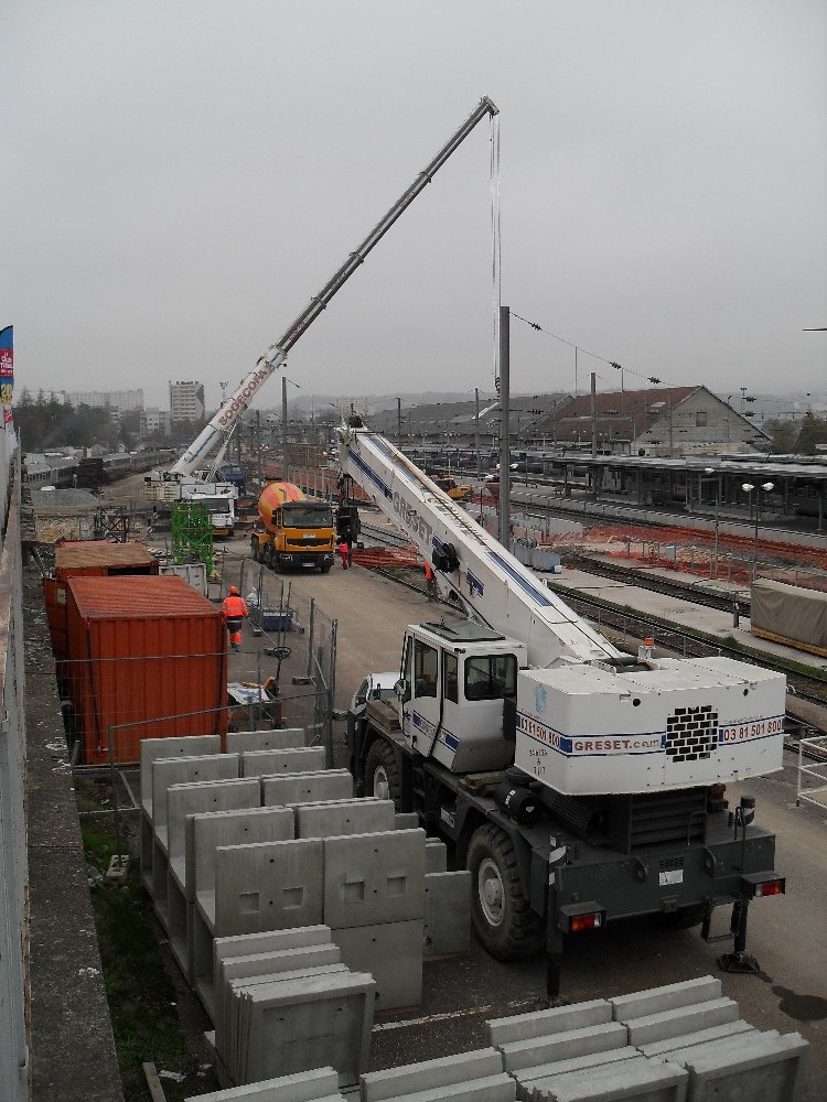Etant de nouveau sur Besançon ce vendredi 25 novembre, je me suis arrêté quelques instant, ils avancent bigrement vite, une voie à déjà été reposée: