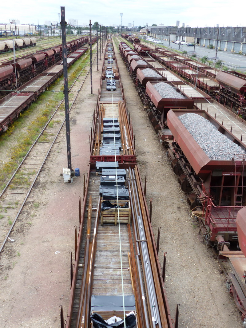 Plus que l'alignement des wagons, j'adore ces vues de dessus car, en tant que modéliste, elles sont pour moi source d'inspiration pour patiner mes modèles, voire pour les charger puisque certains wagons présentent des chargements comme sur tes dernières photos. Continue ;)