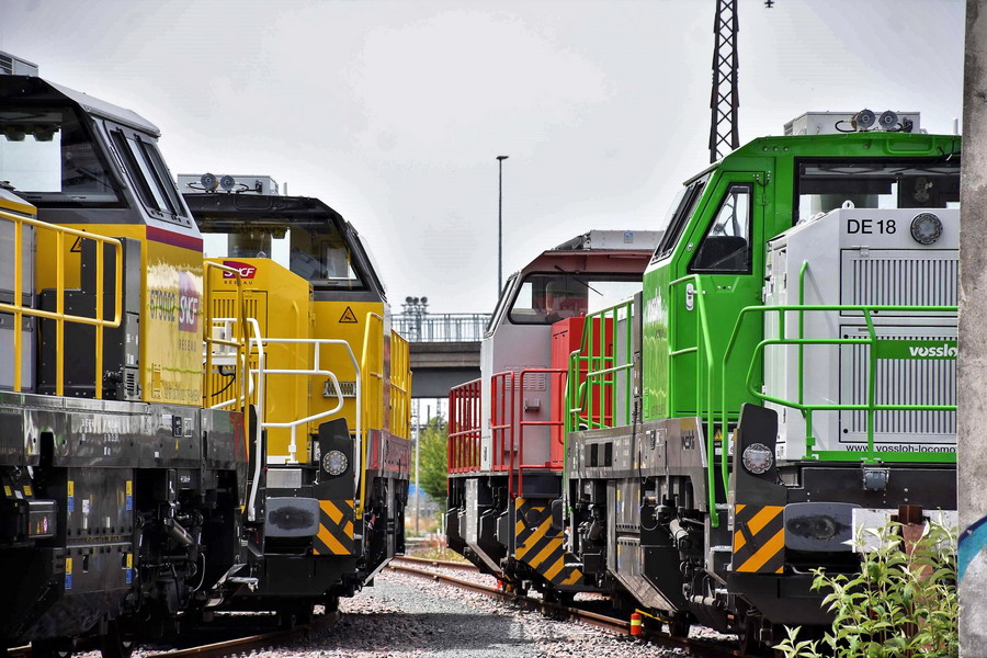 vue d'ensemble des machines Vossloh sur le site de maintenance IMATEQ à SPDC le 16-05-2019
