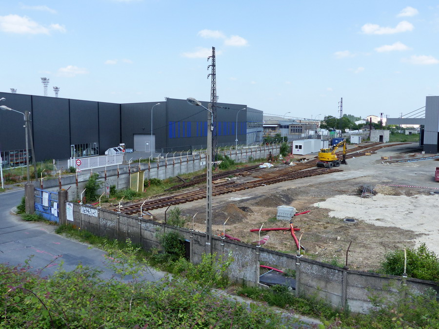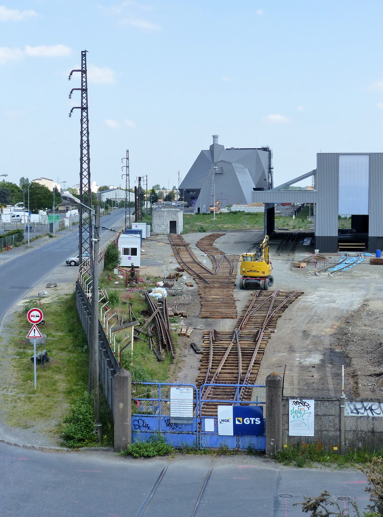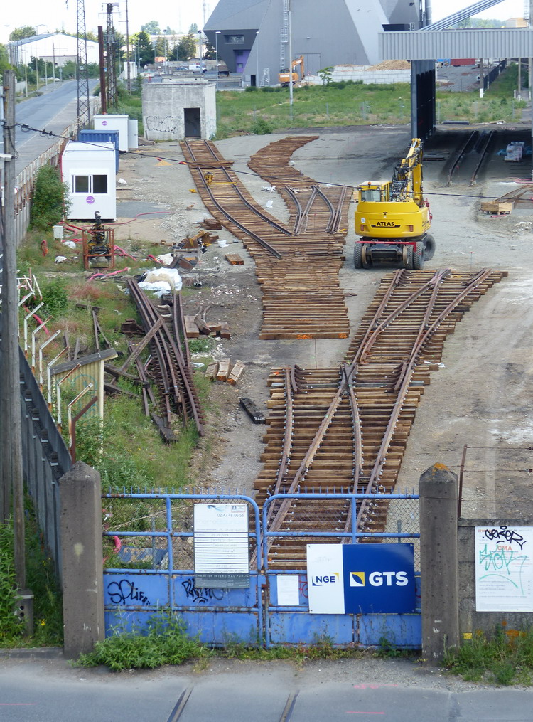 routier qui arrive à la gare de Saint Pierre des Corps puis la voie rentre dans la cour de la Socofer pour relier le réseau SNCF
