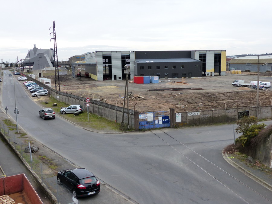 à gauche des nouveaux ateliers IMATEQ se trouve l'atelier de la SOCOFER pour rappel et on peu voir la voie qui sort de la grille