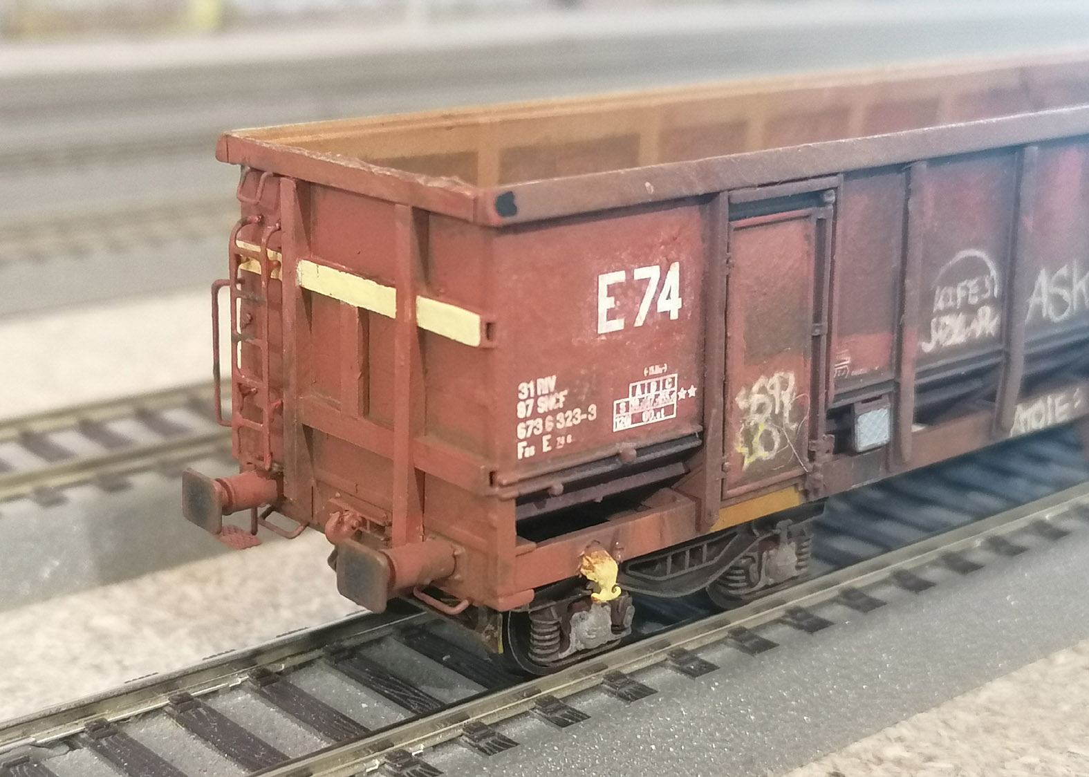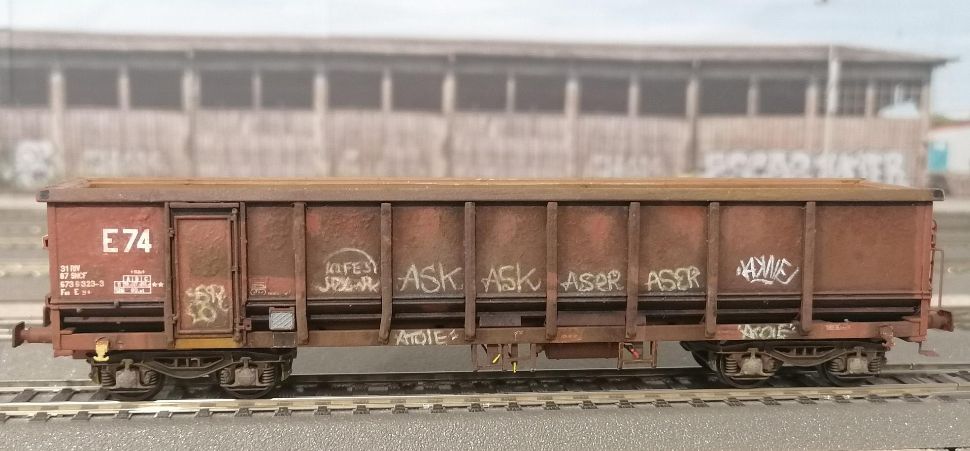 Bonjour à tous, un autre wagon tombereau E74 patiné