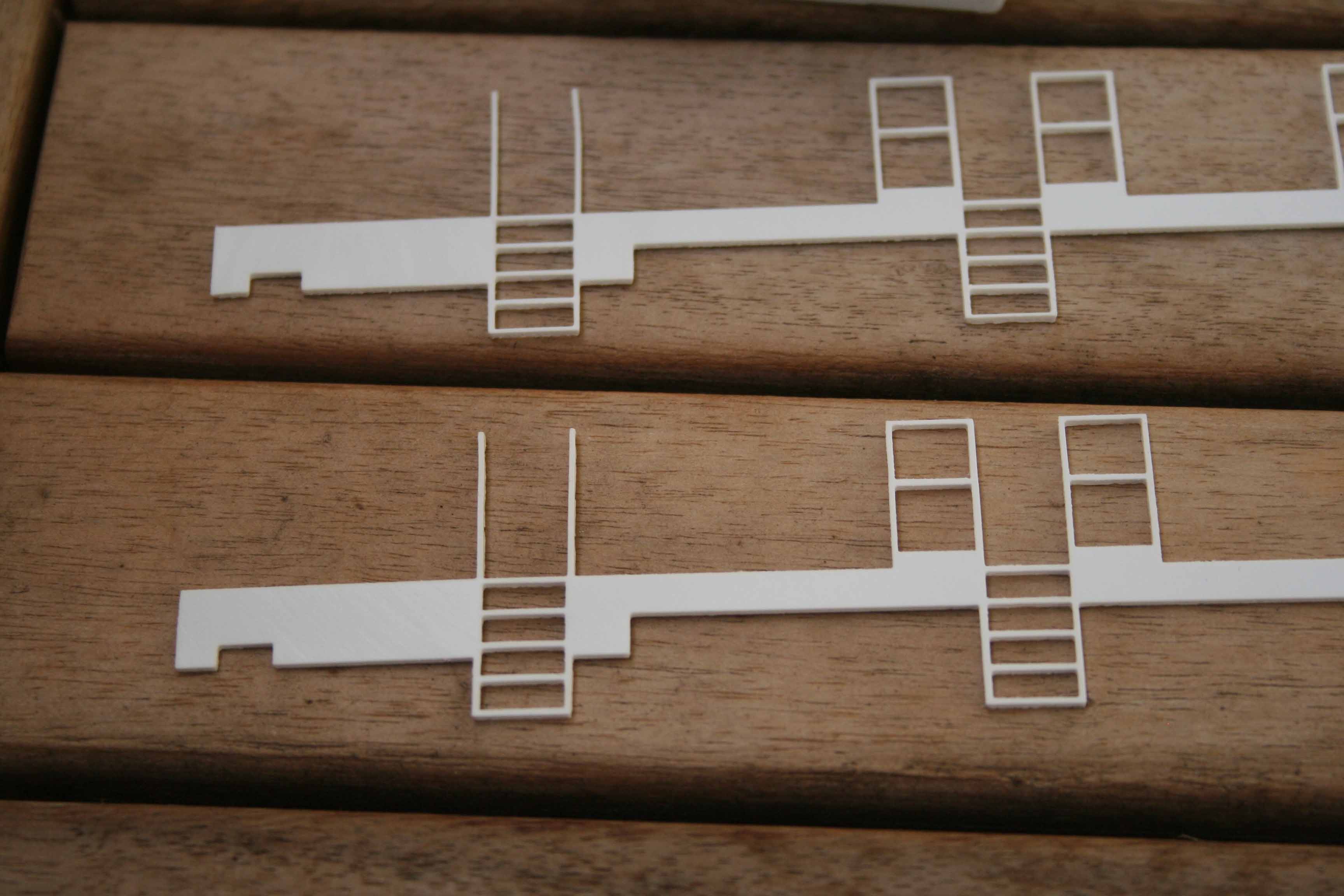 vu l'heure!!! Impressionnant! Le gros avantage avec la pièce de la première photo est d'économiser un temps précieux! Plus de petites pièces à découper et coller... Et en plus un équerrage parfait! Pas de marchepieds qui risquent de partir en vrille!