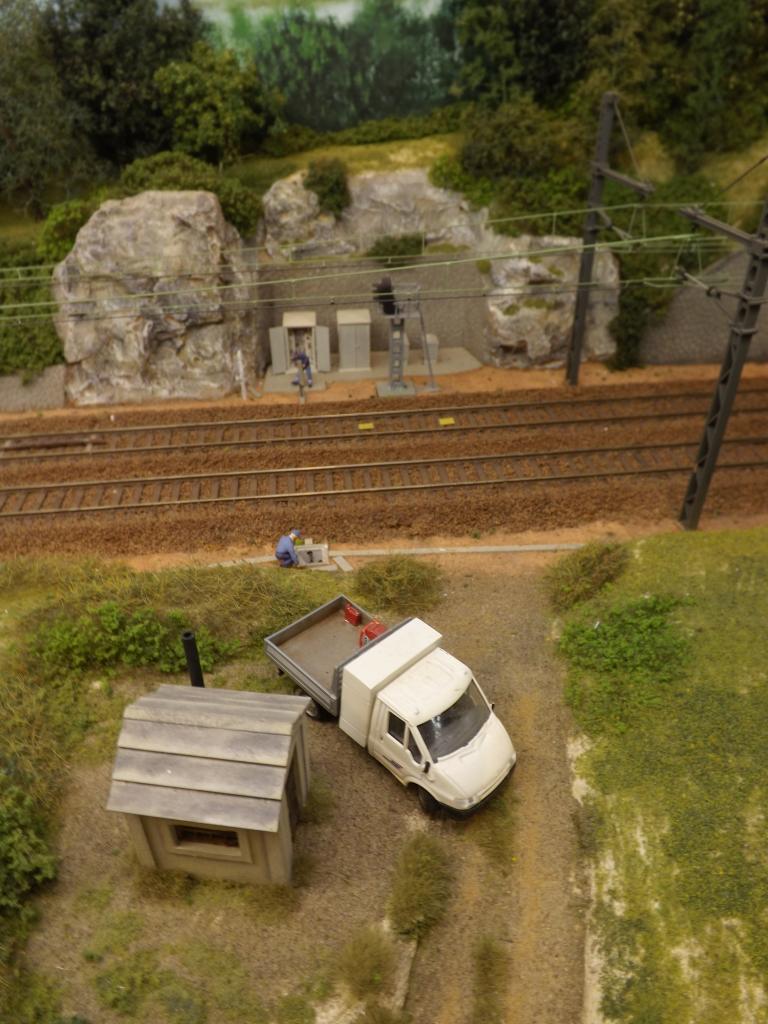 un circuit Faller car system fait également parti du décor avec espacement automatique des véhicules (environ 10 véhicules peuvent circuler simultanément et en toute sécurité) Présenté dans loco-revue d'octobre Dim 10m x 2m. http://rmc71.fr/Reso_Goasdoue.html