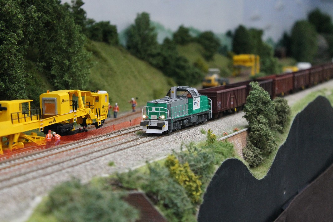 Diorama montrant le remplacement d'aiguilles par la grue Kirow de TSO. Cherchez l'intrus ...