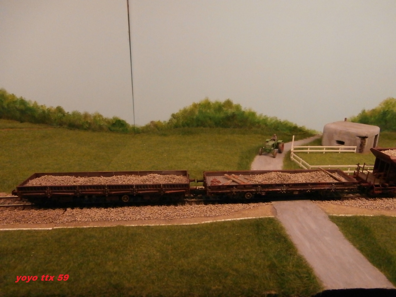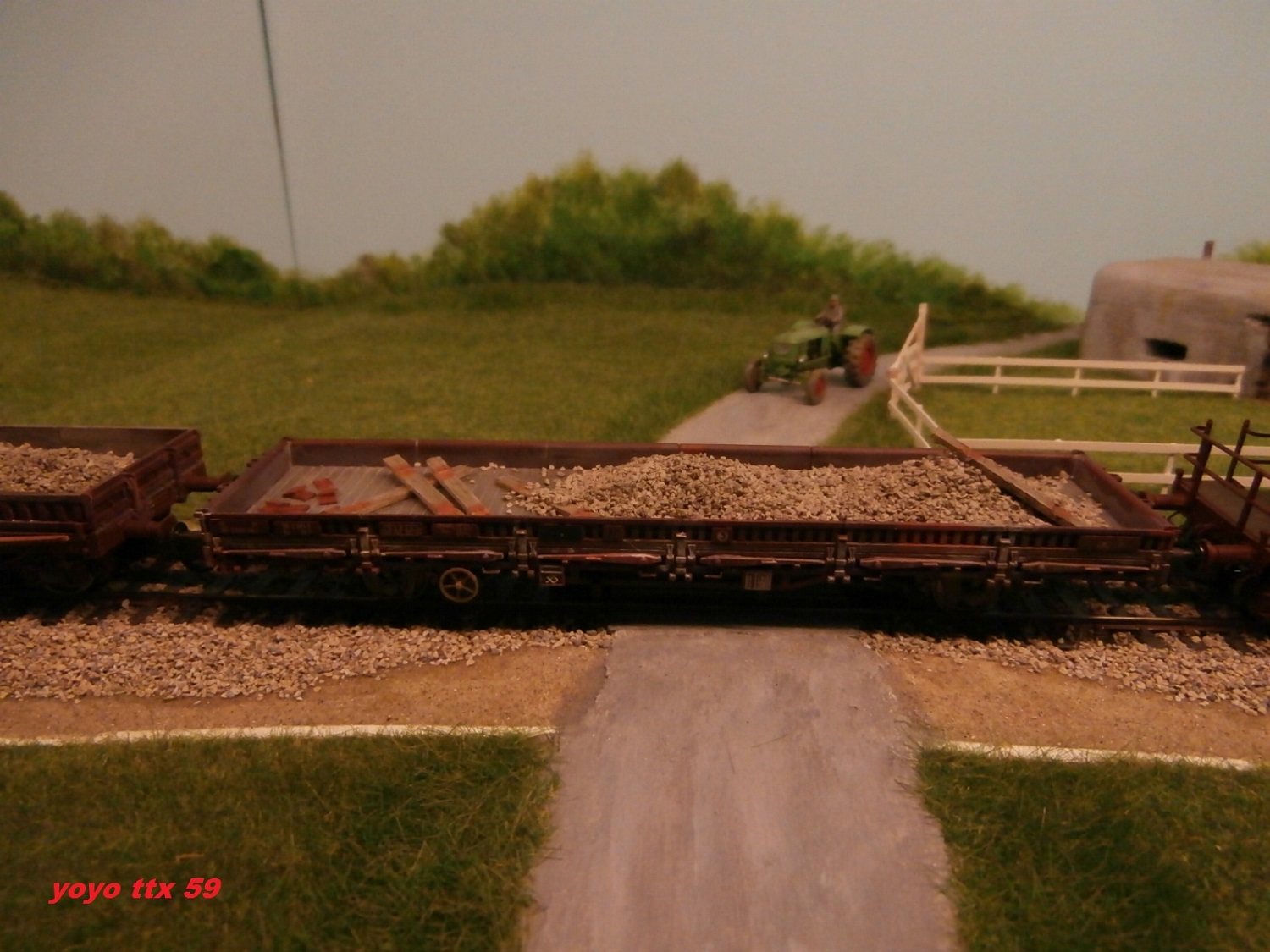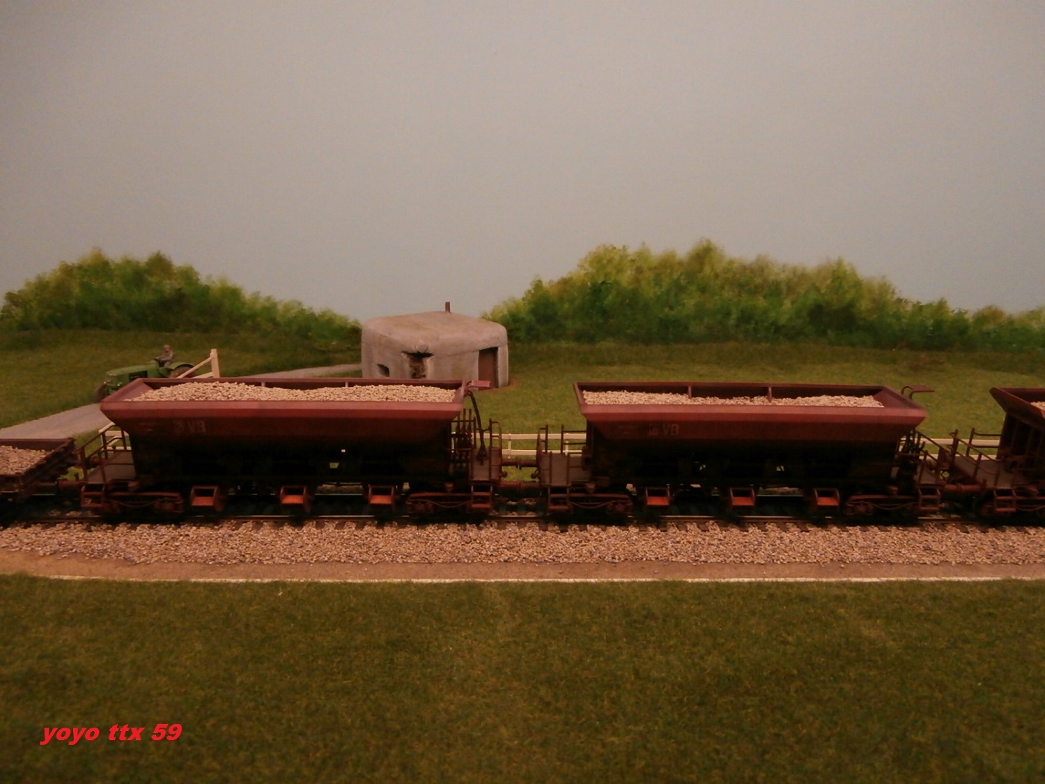 Nous voici de nouveau a courir dehors , et la :o un train de ballastières quitte lui aussi la petite base travaux :