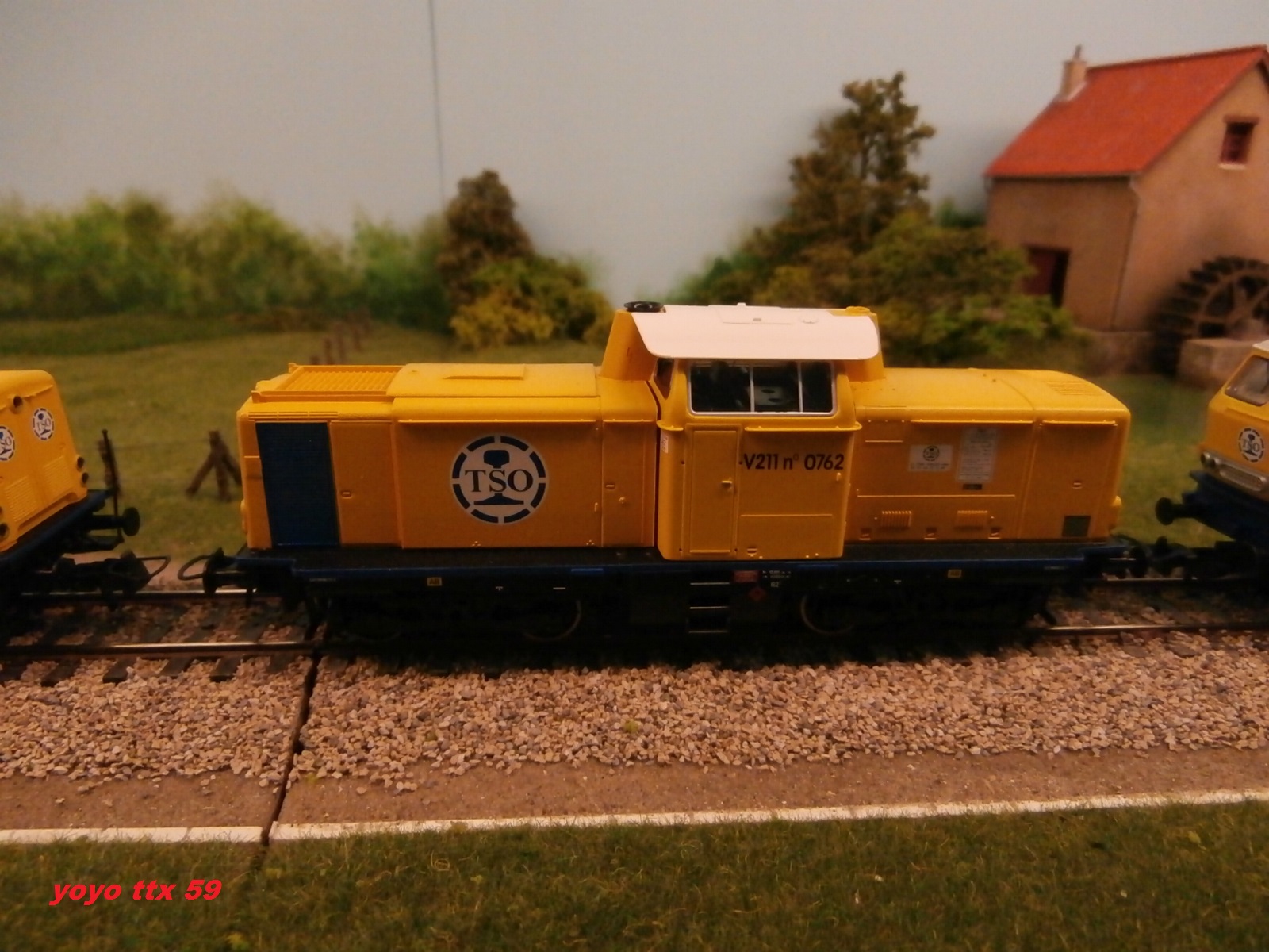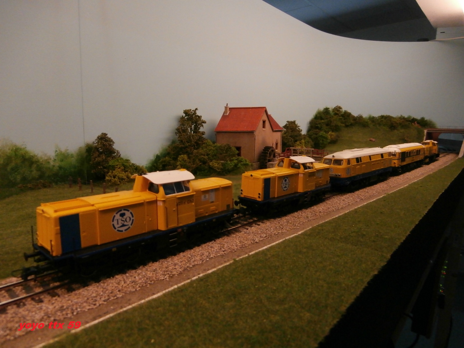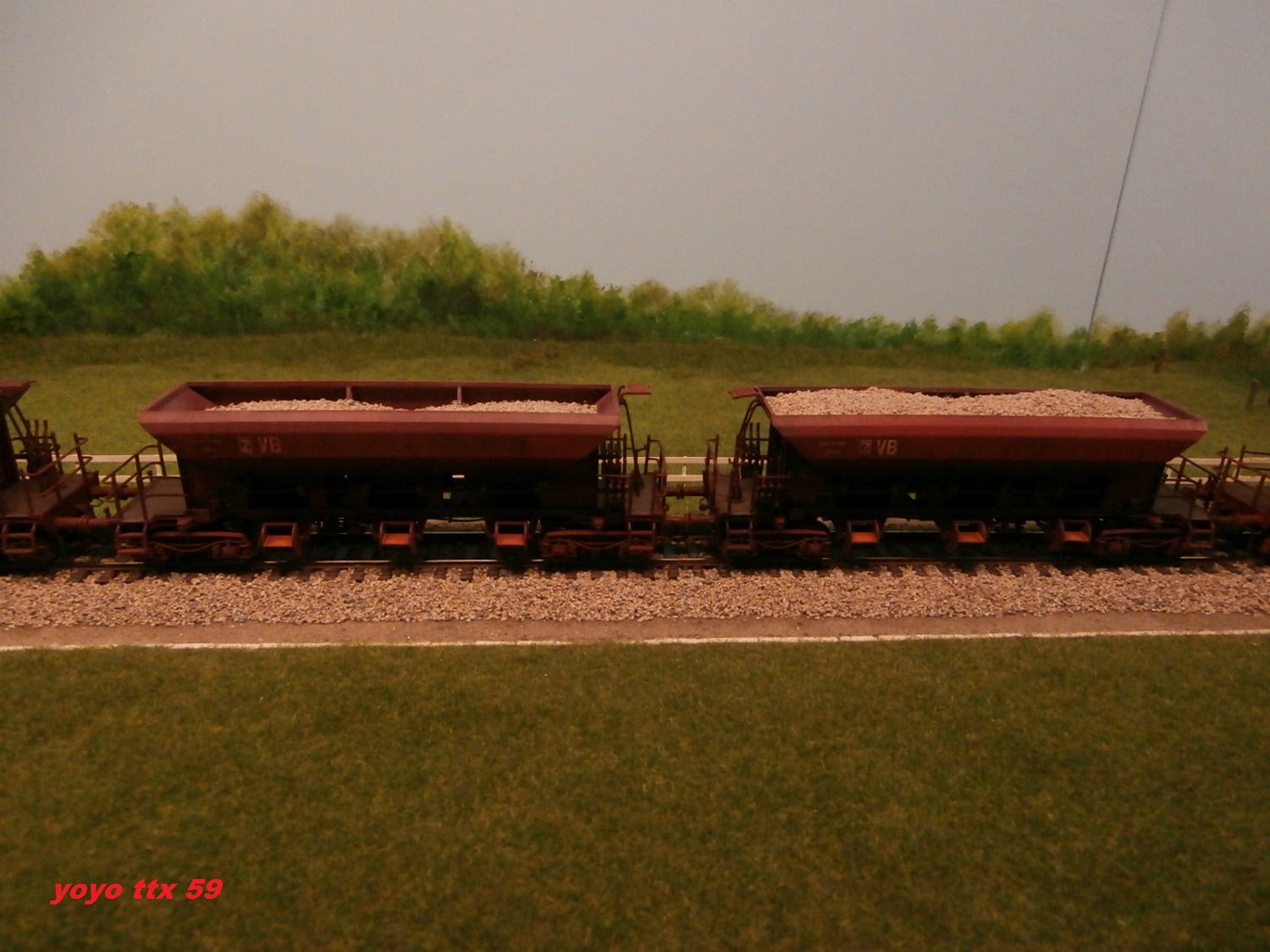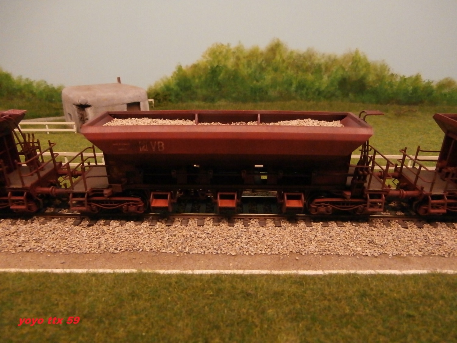 Nous voici de nouveau a courir dehors , et la :o un train de ballastières quitte lui aussi la petite base travaux :