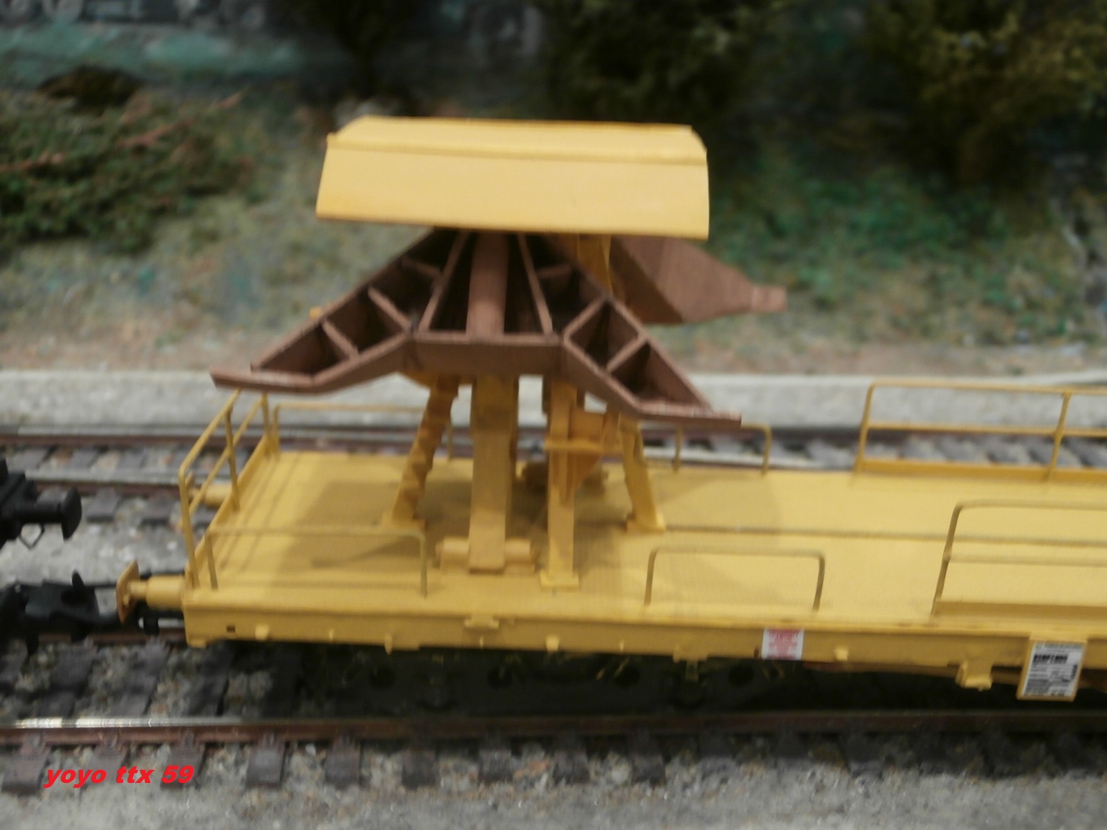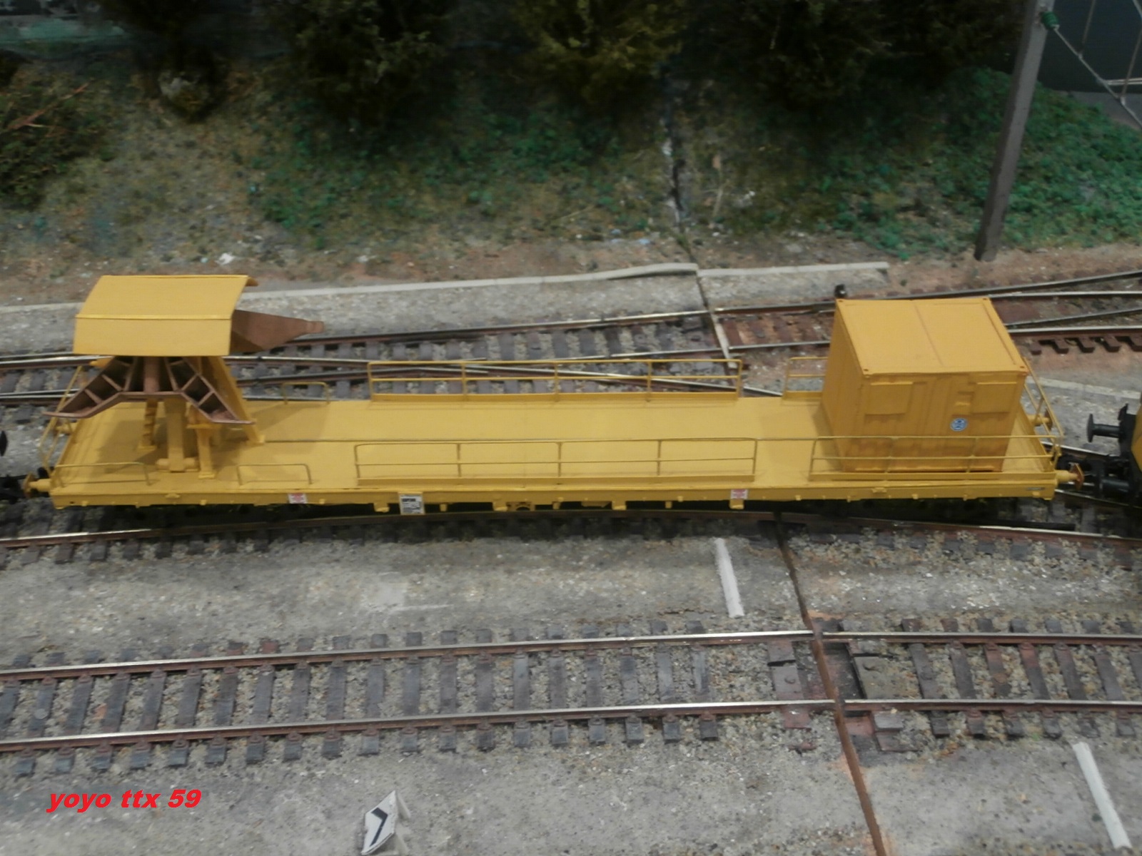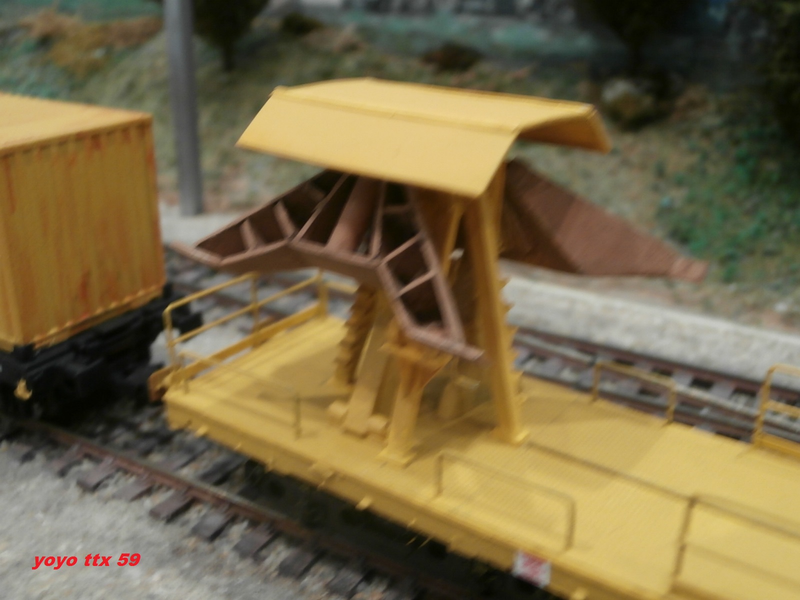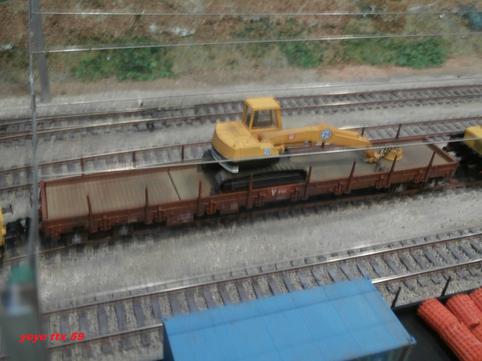 Voici un wagon plat charger d'une pelle avec aimant :