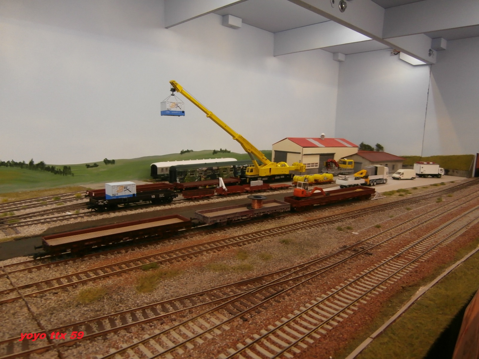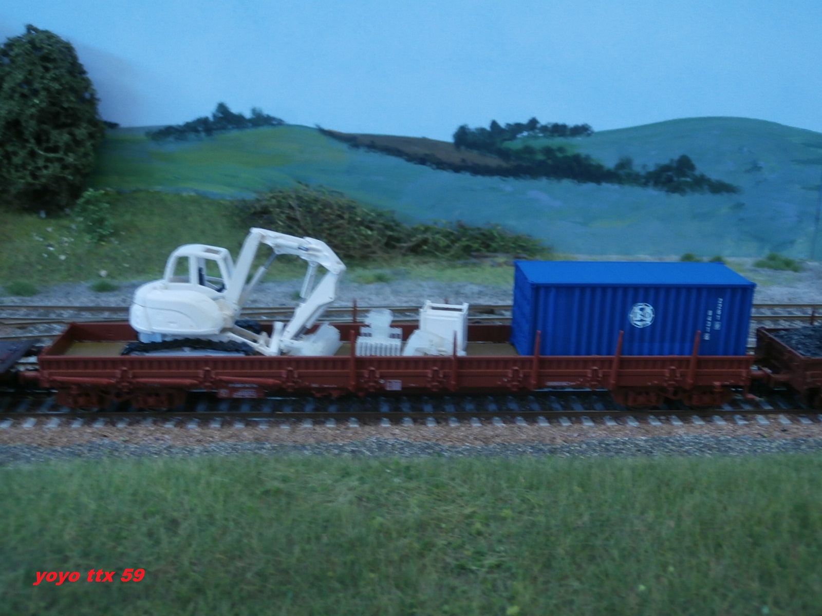 Voici maintenant ce wagon plat avec une grue MECALAC 10MCR de notre ami Guillaume ( :coucou: ) :