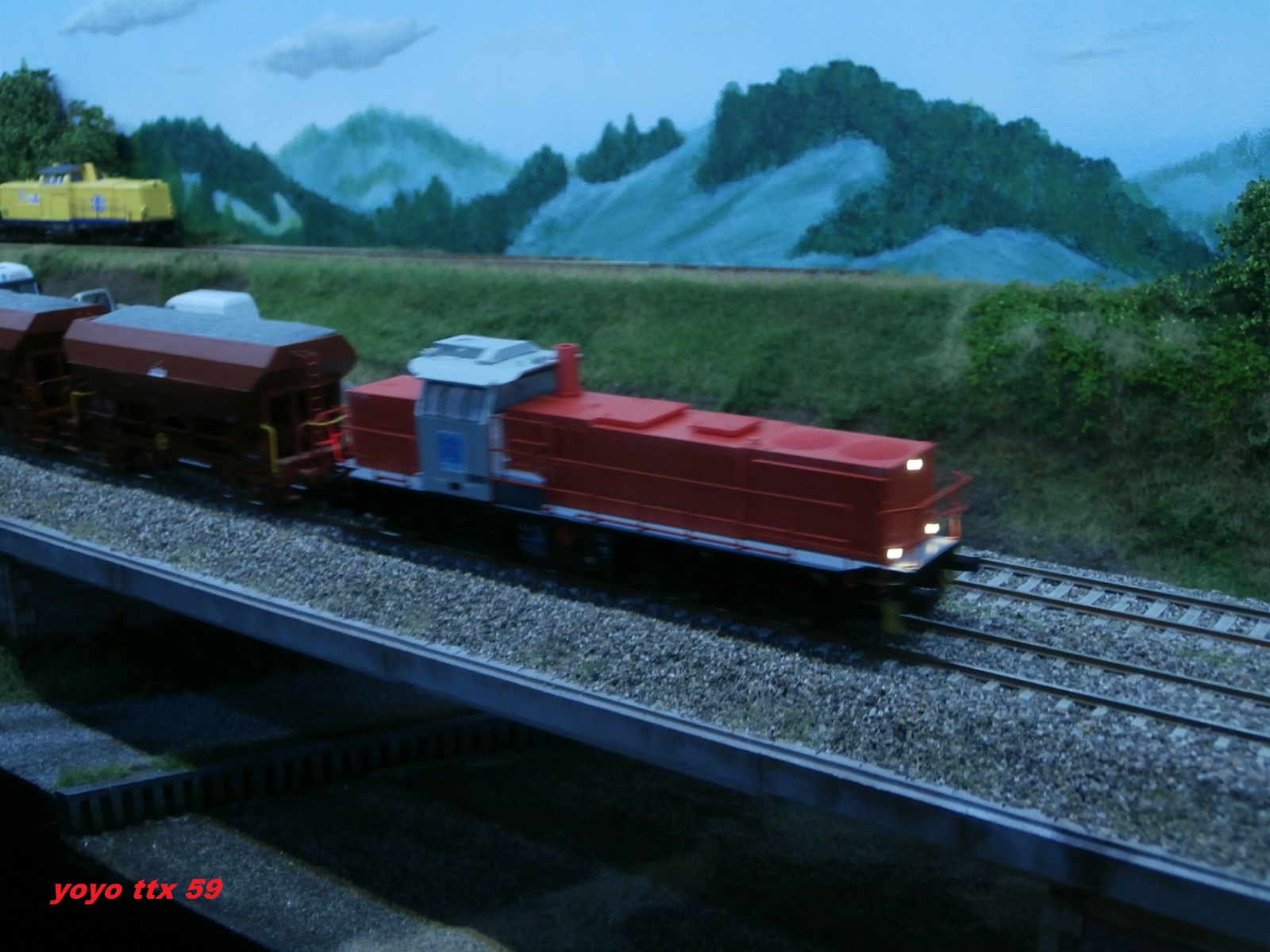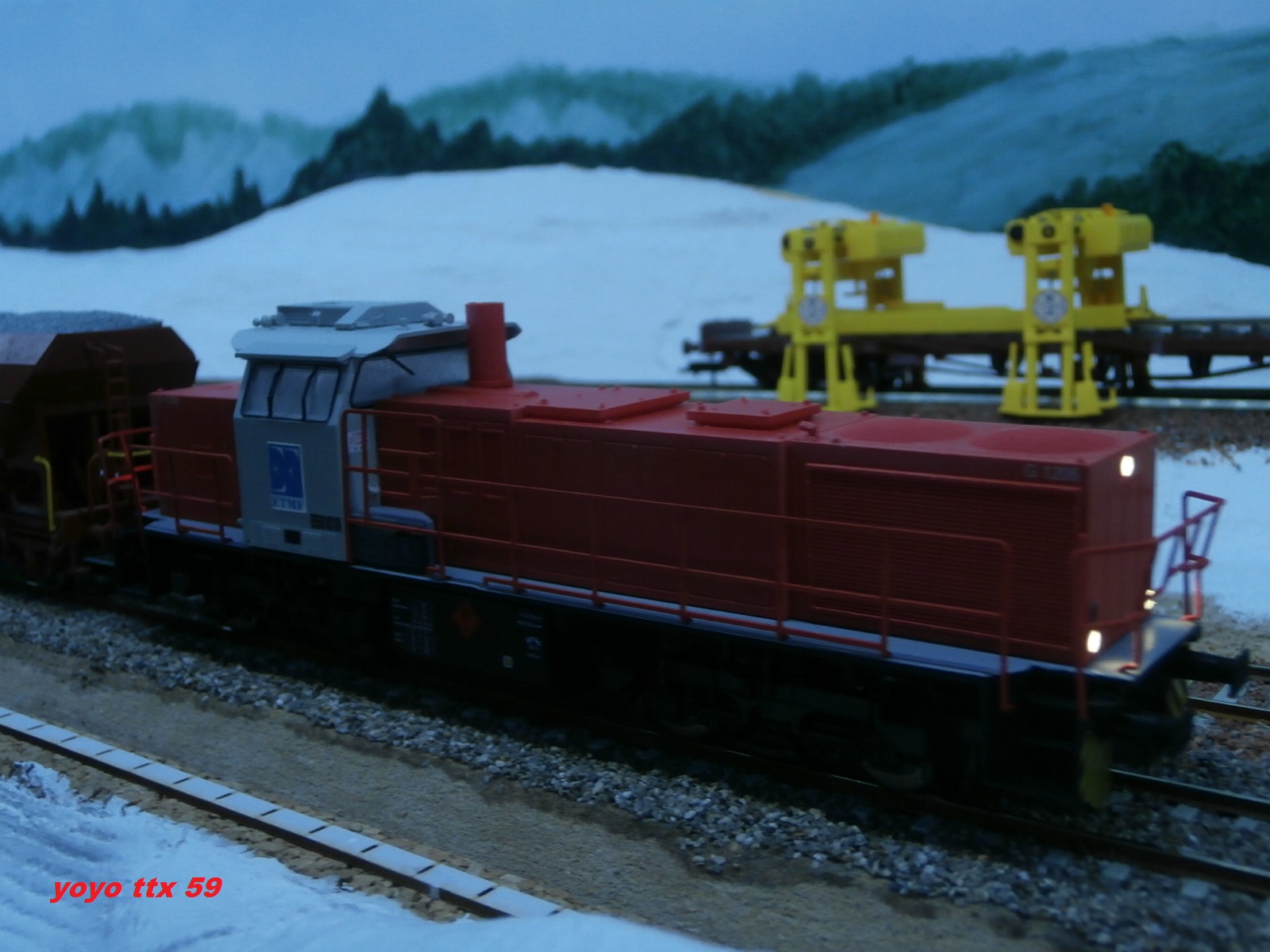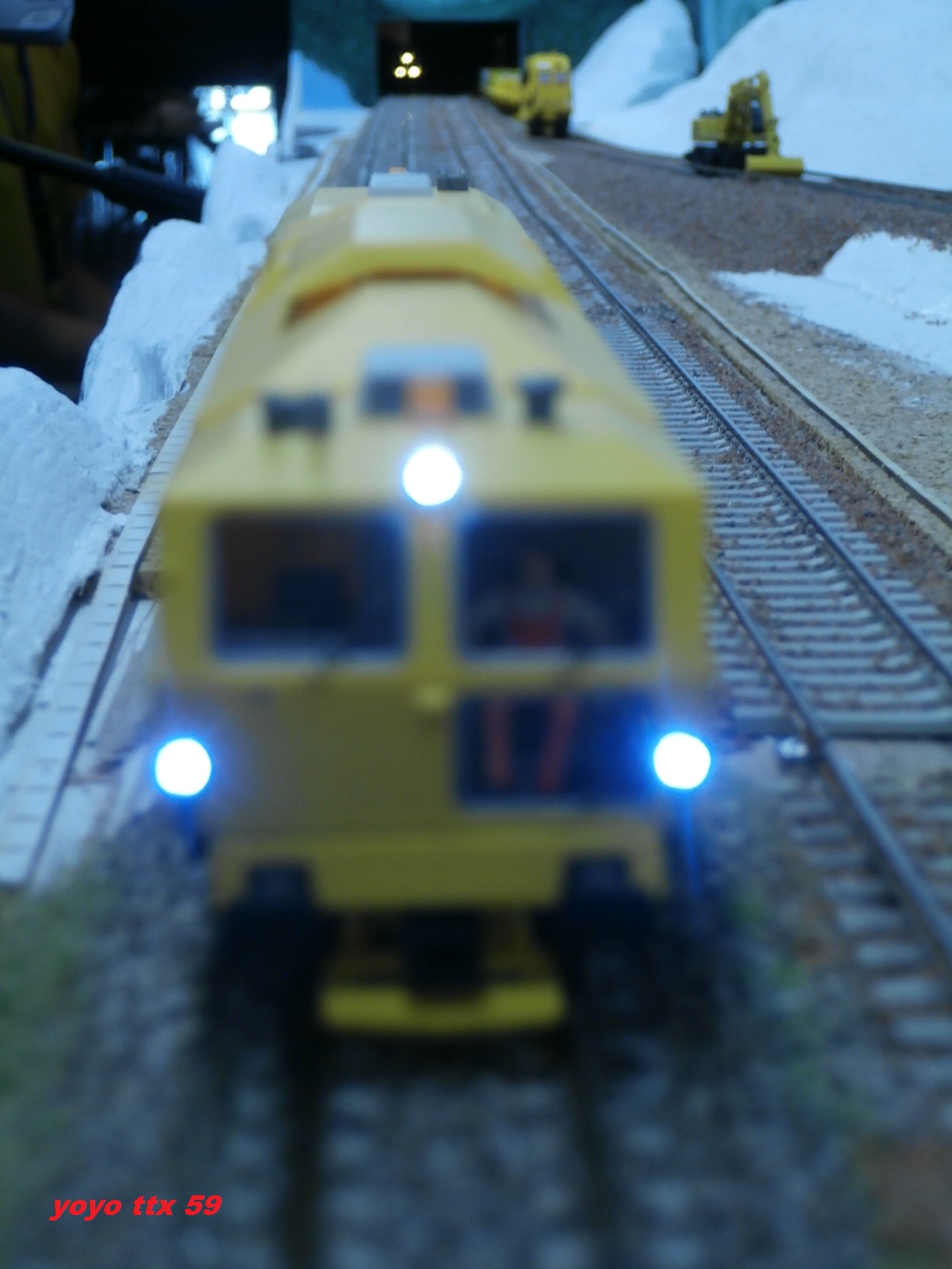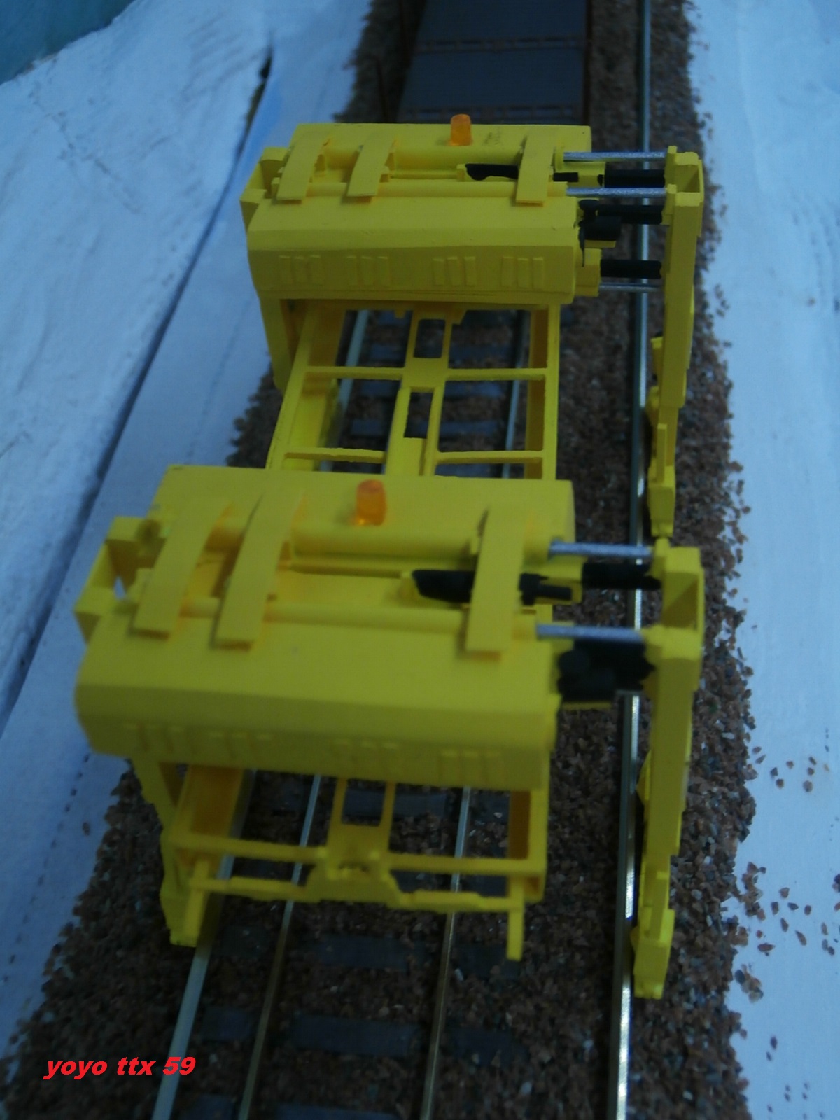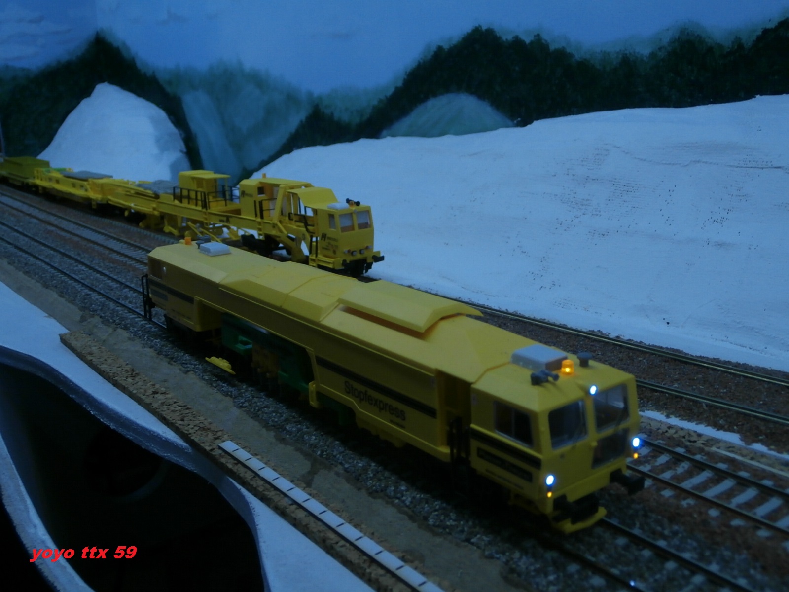 .Avant l'ouverture aux circulations commerciale , un dernier chantier avait lieu sur voies principales .Ce chantier consisté a une dernière opération de ballastage , suivie d'un dernier bourrage de la voie .Voici l'opération ballastage réalisée par ETF avec le soutien de VFLI :A suivre :