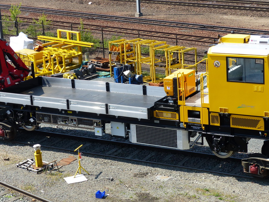 Une des draisines pour le Pakistan Railways sortant de fabrication des ateliers de la Socofer à Saint Pierre des Corps en photos la n°6 série A0114 avec essieux pour voie large 1676 mm ce qui explique les bogies pour déplacer sur voie normale
