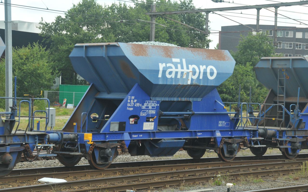 Voici une trémie immatriculée au Pays Bas d'Eiffage Rail. On reconnait un tapis de vad orienté vers la trémie.