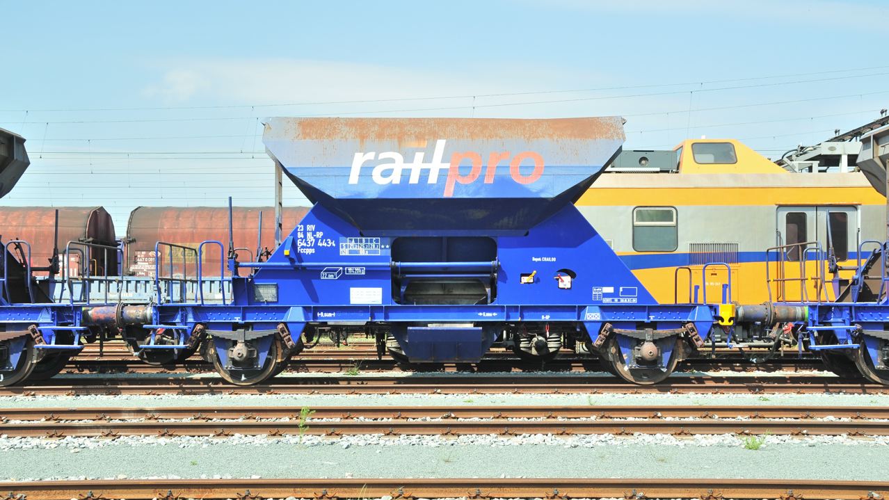 Voici une trémie immatriculée au Pays Bas d'Eiffage Rail. On reconnait un tapis de vad orienté vers la trémie.