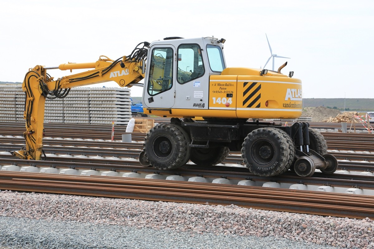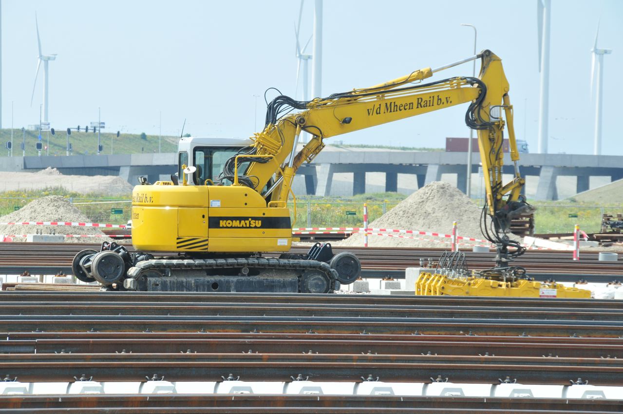 Voici des machines que j'ai vu à Rotterdam, tout au bout du bout du port ou un faisceau est créé pour agrandir le stockage des wagons porte-containers.