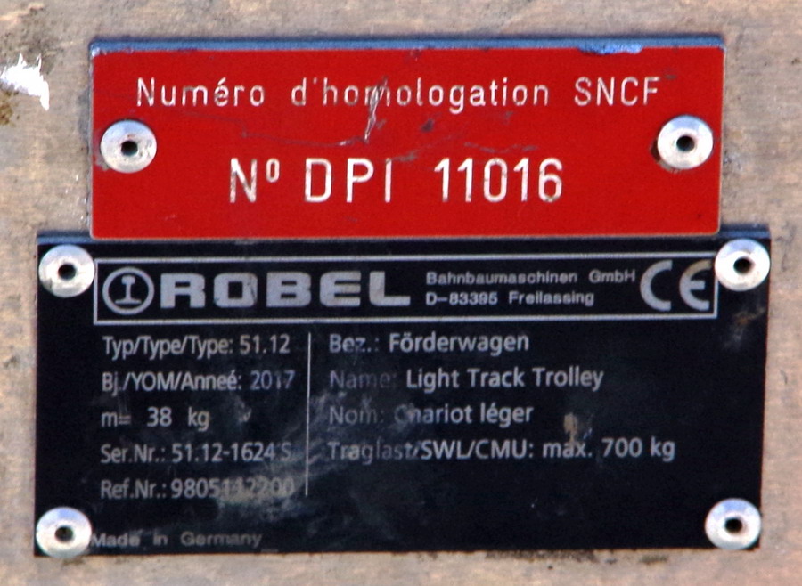 Numéro d'homologation SNCF : DPI 11016 - charge Maxi 700kg
