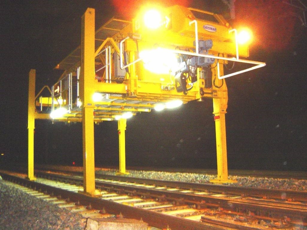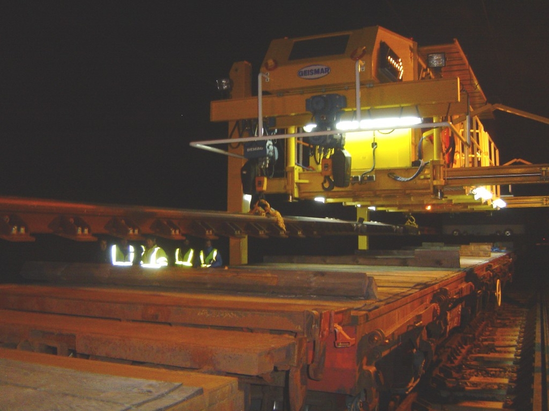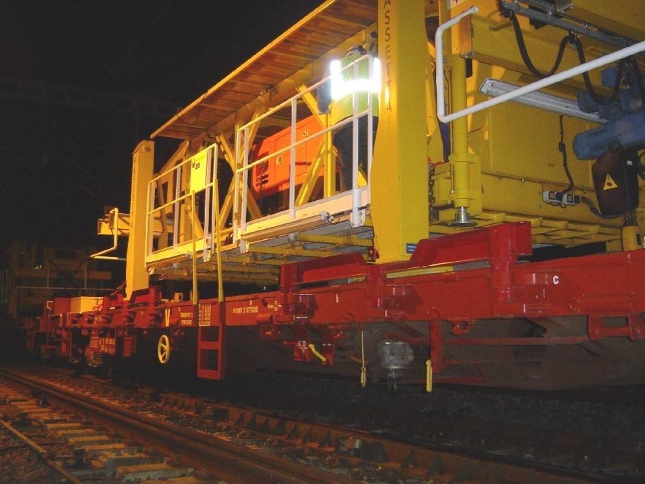 Voir les portiques sur leurs wagons, c'est bien mais les voir en action justifie le concept. Par conséquent voici quelques photos de l'utilisation en conditions réelles de portiques Fasseta sur LN5 à l'occasion d'un remplacement d'un cœur d'appareil de voie suite à talonnage. Ces photos datent déjà d'une dizaine d'années.