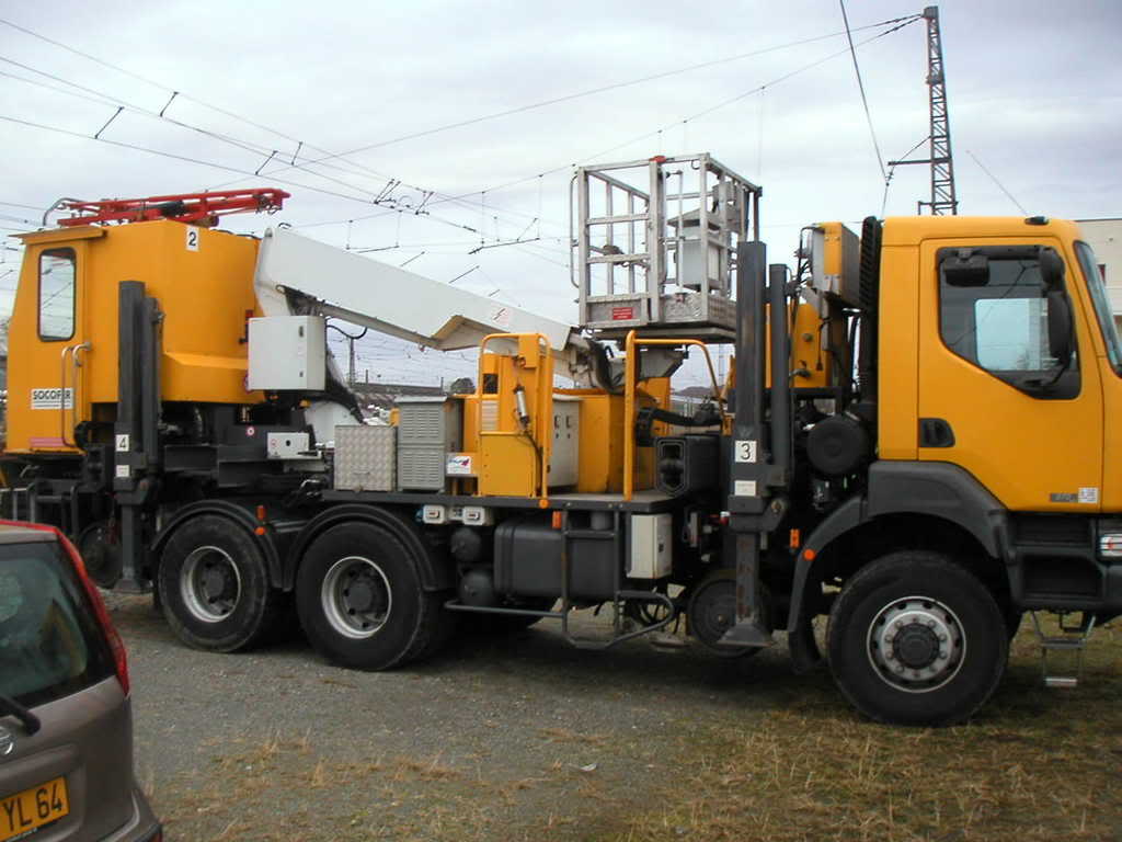 Voici un "couteau Suisse" que je n'arrive pas a classer. Ce camion est vraiment typique .On voit bien ses 4 béquilles qui lui permette sa mise sur rail par déplacement latéral.