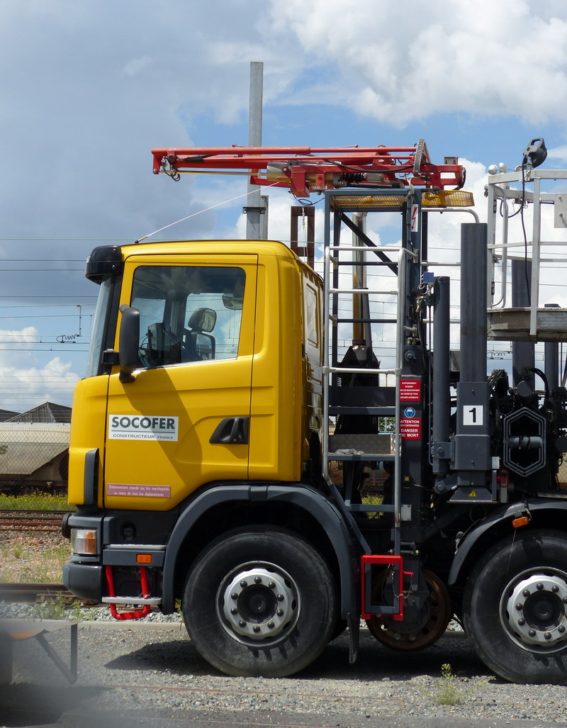Voici le camion Scania Rail Route W 993 FJ pour intervention sur la caténaire à la Socofer de Saint Pierre des Corps 37