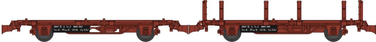 SET DE 2 WAGONNETS DE DRAISINE (PLAT A RANCHERS & PLAT) SNCF