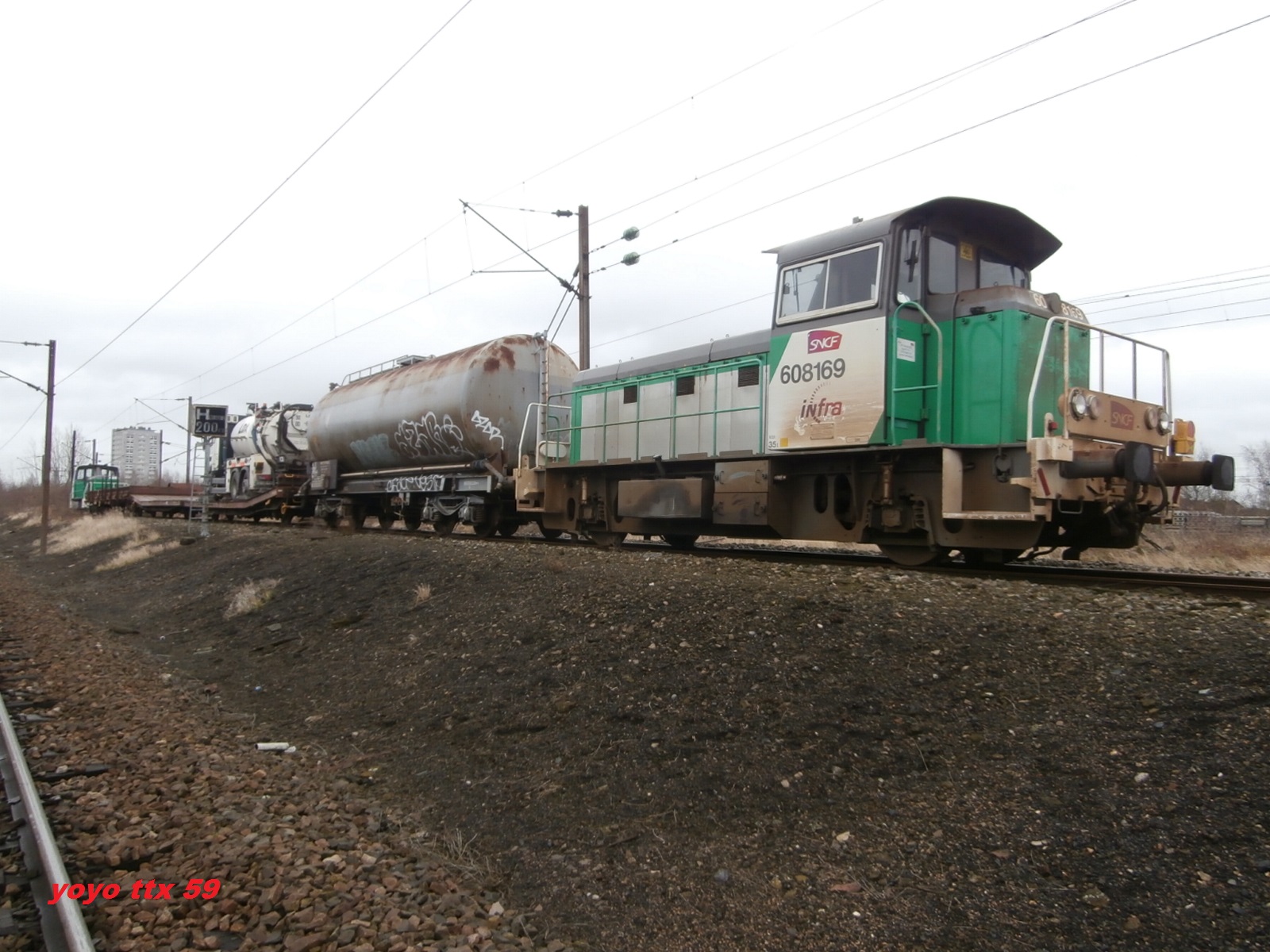 Voici le Y 8169 en compagnie de Y 8267 a Lille Délivrance le 20/02/2016 sur une rame hydro cureur :