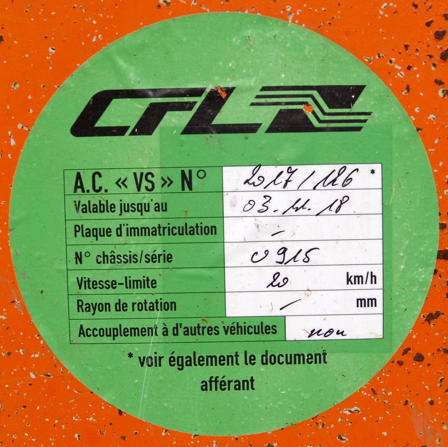 Débrousailleuse UNAC 300 RR n° de série U 916 de 2011 n°d'ordre 7559 PV 19-12-2011 pour SEFA Environnement U3