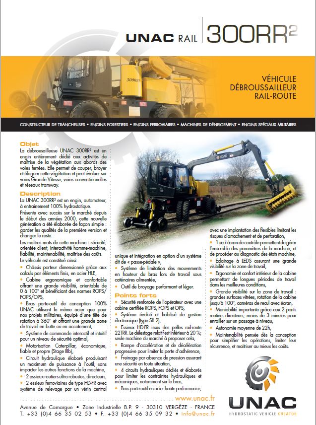 Voici une Débroussailleuse Rail route UNAC 300 RR Kesla 700 n° :?: de l'entreprise Jean Freon élagage