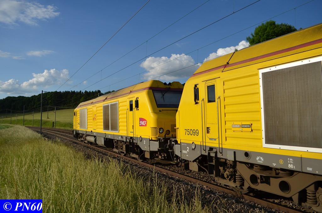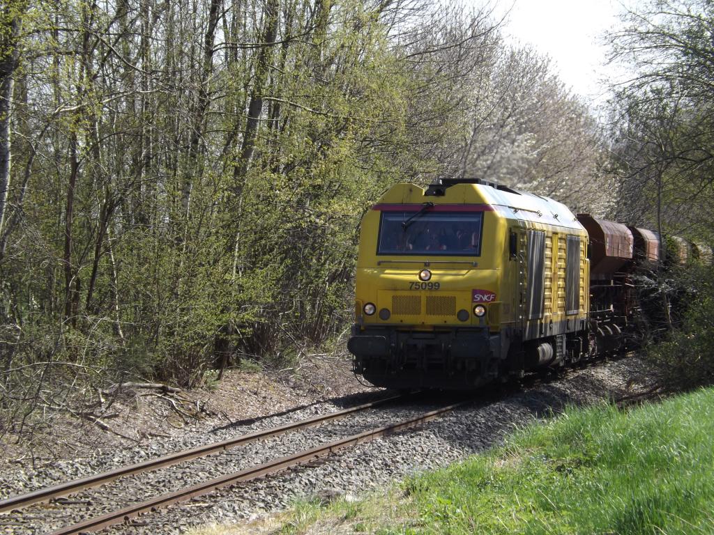 Bonjour Voici la machine (mise en service le 28-01-2009) avec une rame de wagons plats R39 et de la rame LRS ensemble n°23 sur la zone de garage des rames infra à Saint Pierre des Corps le jeudi 20-11-2014, train vide pour Moulin-Neuf