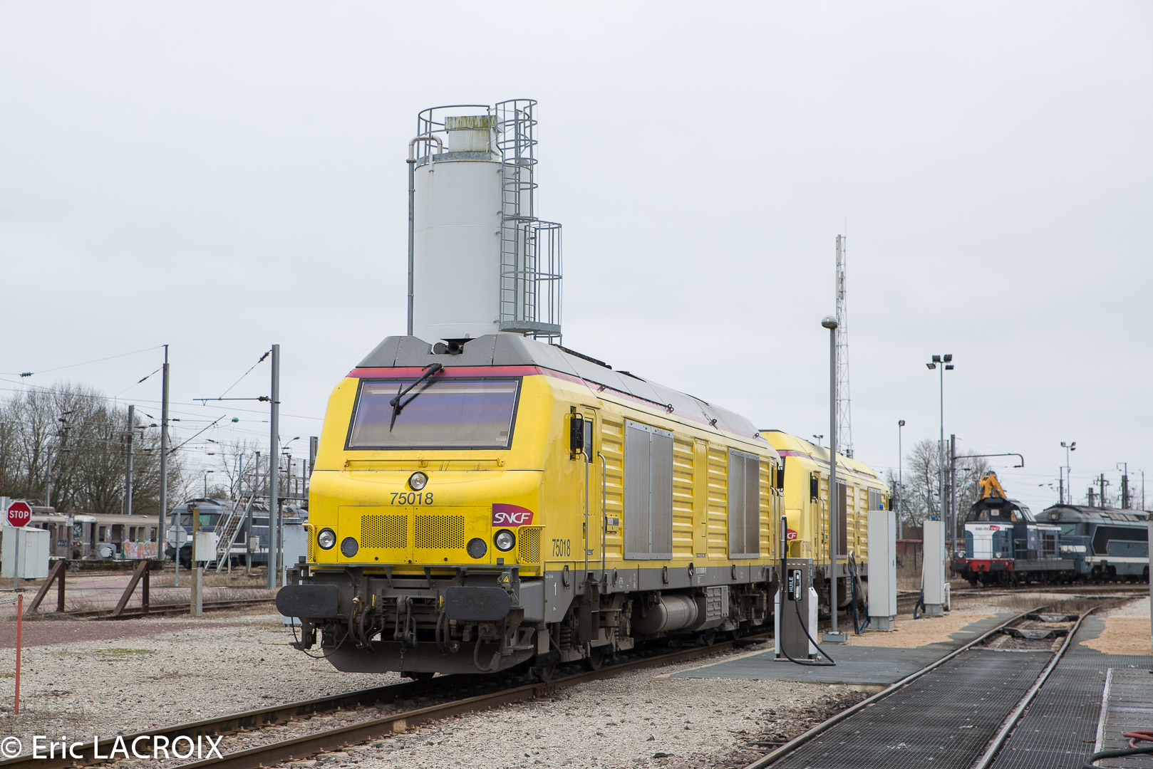 Voici la 75018 Infra en livrée jaune - 92 87 0075018-7 F (mise en service le 28-03-2007) ex Akiem en livrée grise