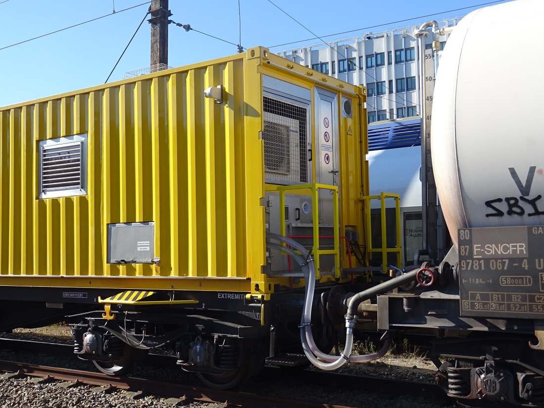 Il resterait 5 trains nationaux, celui ci le TDGR 21-1 utilise un nouveau wagon équipé en module de désherbage 99 87 9 395 000-2 (système RECOSPRAY).