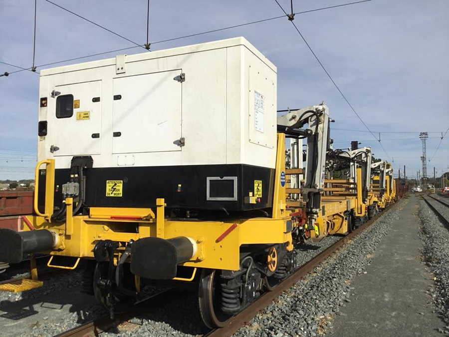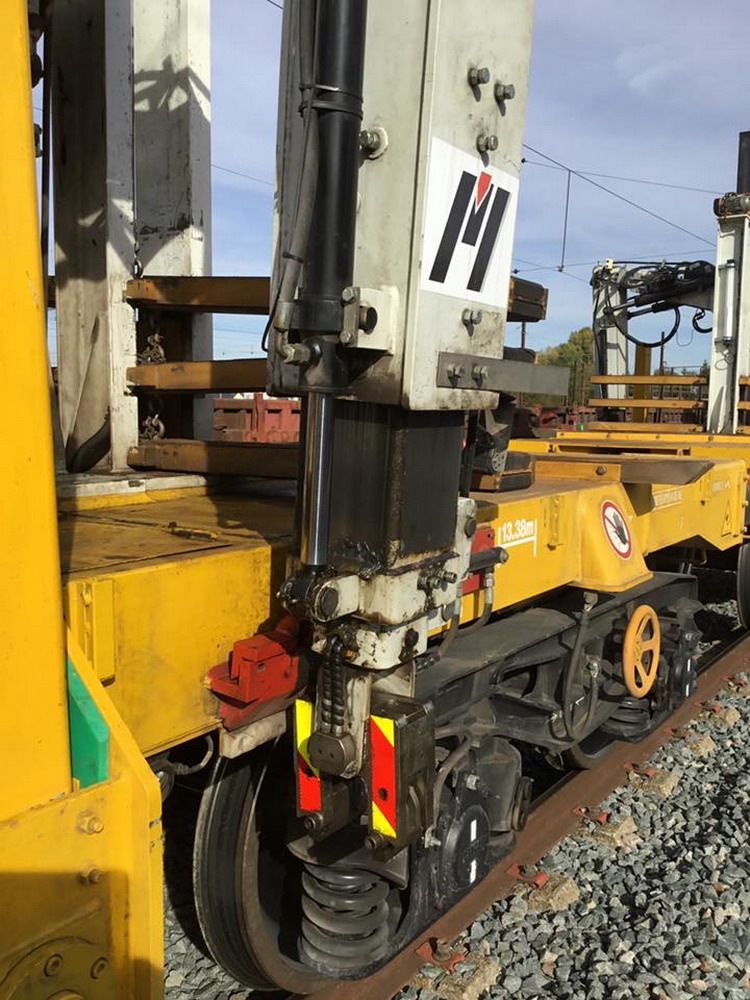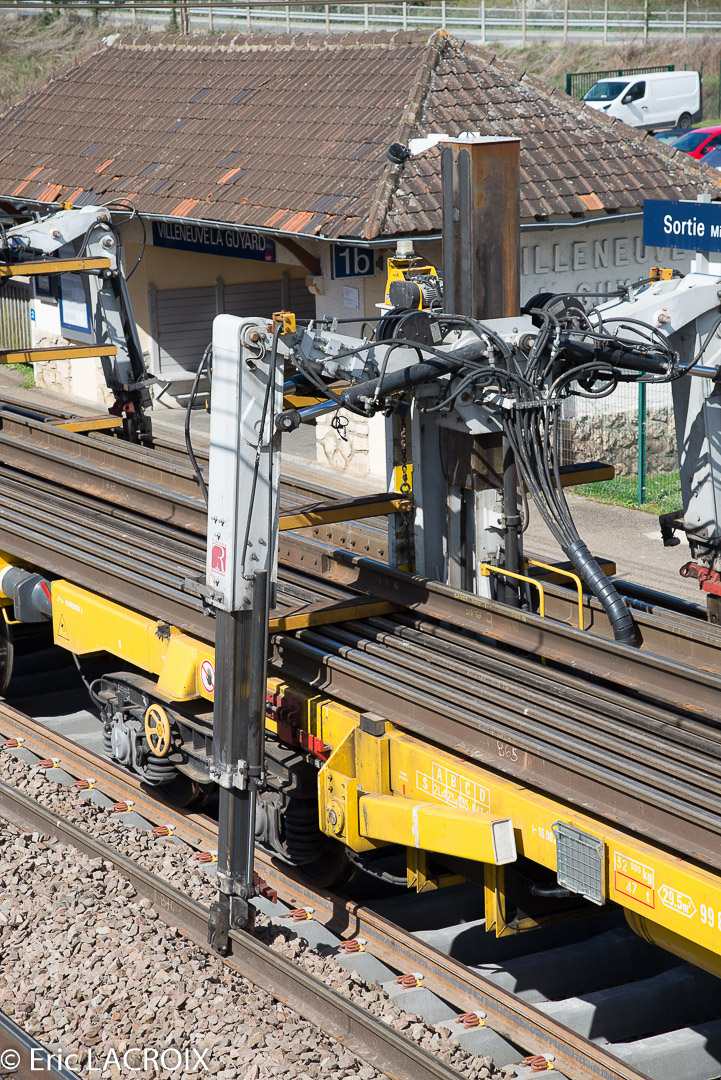 Couplage Wagon grue BRRAS 99 87 9351 558-1 et 99 87 9351 557-3Transalp Renouvellement à Villeneuve la Guyard en mars 2017.
