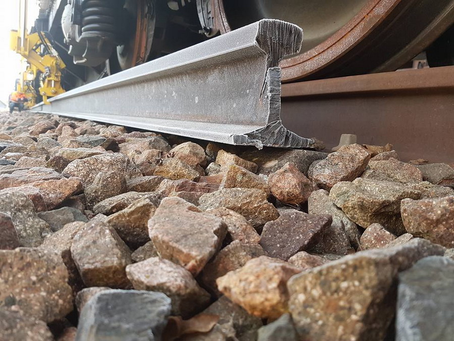 Voici un nouveau wagon de déchargement et de chargement de rails pour TSO en démonstration le 13 décembre 2017