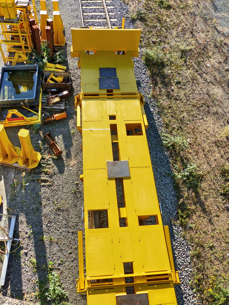 J'ai ensuite pensé à des wagons d'extrémité pour de futures rames de transport de LRS ... mais je n'y crois pas non plus en raison des accessoires saillants sur les traverses qui sauteraient à la moindre !