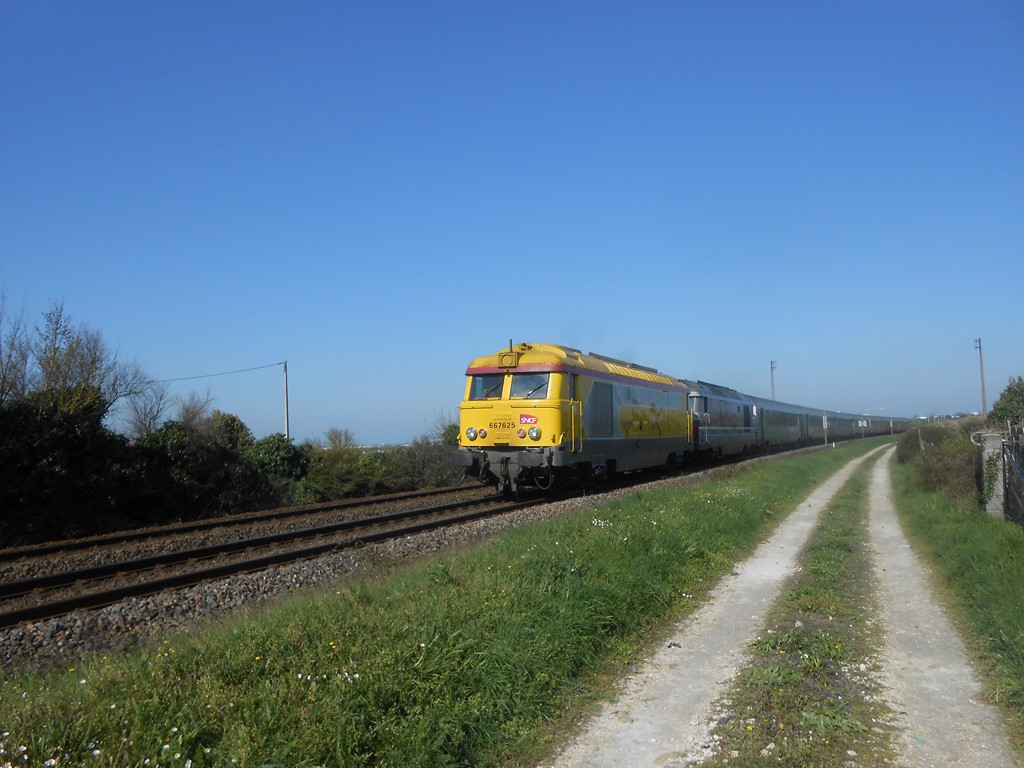 Bonjour Voici la 67625 Infra avec la 22383 Infra avec une rame Infra sur les voies de garage des rame Infra/SNCF Ã Saint Pierre des Corps le lundi 31 mars 2014 Ã 15h30