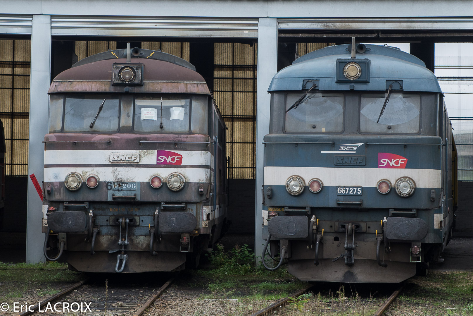 Voici la 667275 ex 67013 mise en service le 29-01-1964 sur une rame de Trémies avec la 667278 en queue sur la base de travaux