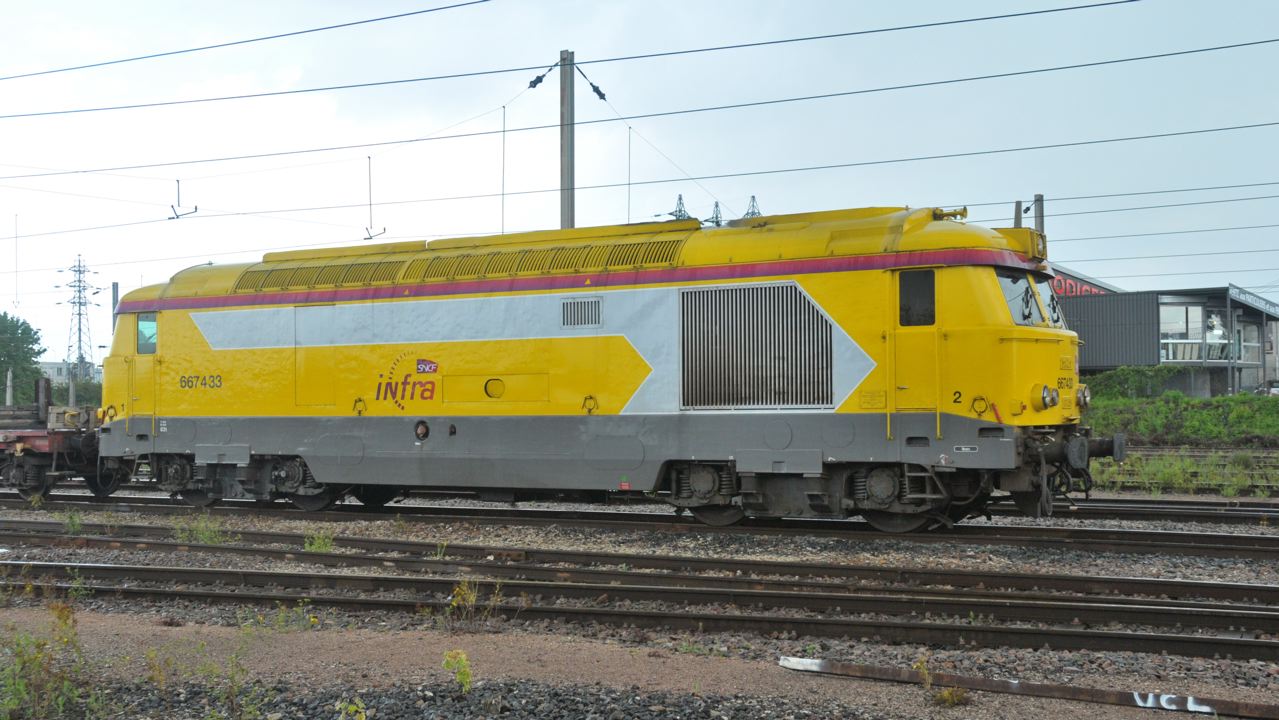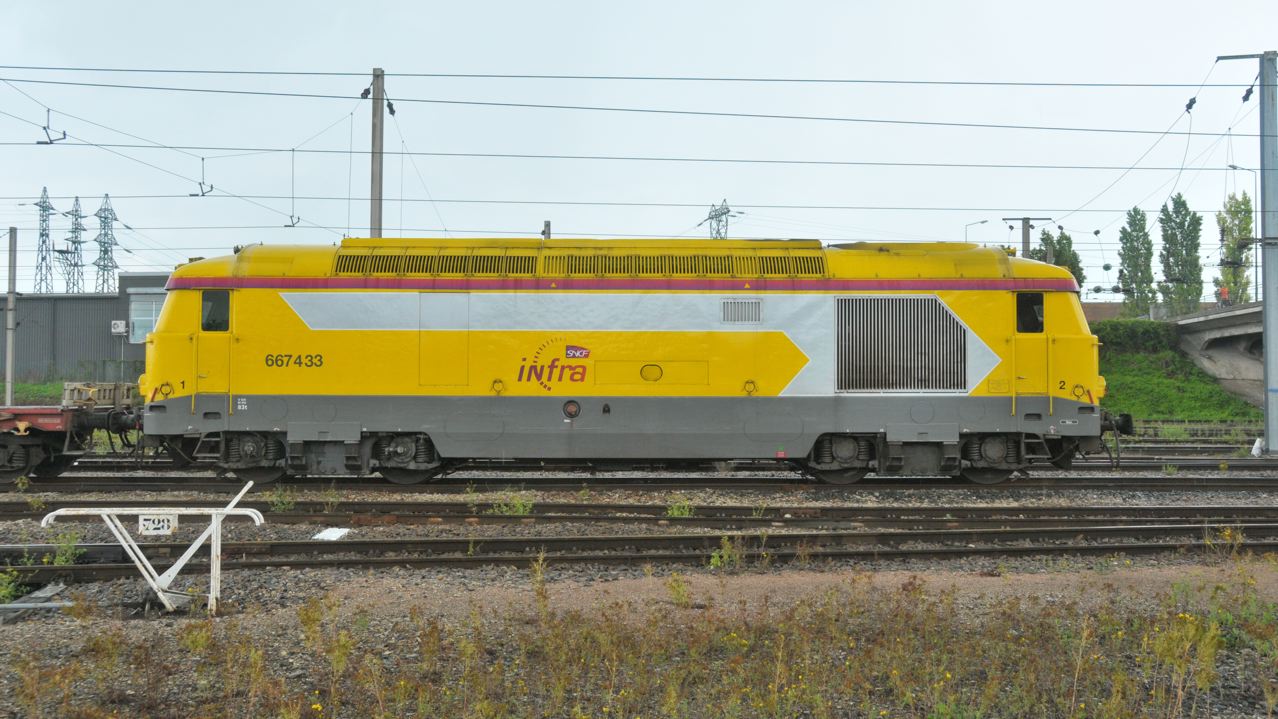 Bonjour La 667433 arrive de l'ouest avec la 622366 en tête à 15h35 dur la zone de garage des rames Infra/SNCF Saint Pierre des Corps le vendredi 22-08-2014