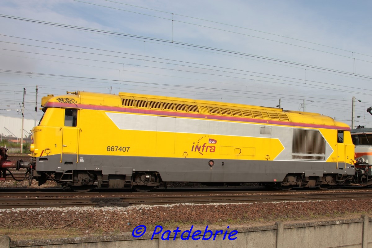 en compagnie de la BB 67412 Infra qui arrivait de Montbéliard avec plus de 30 wagons vide mais qui en à laissé la moitié a Belfort pour continué son chemin sur Giromagny