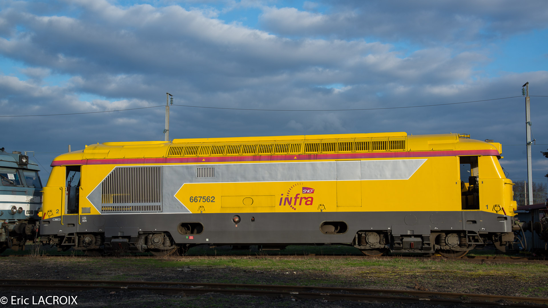 Voici la 667562 en livrée Infra (mise en service le 15-09-1973) ex livrée Corail +
