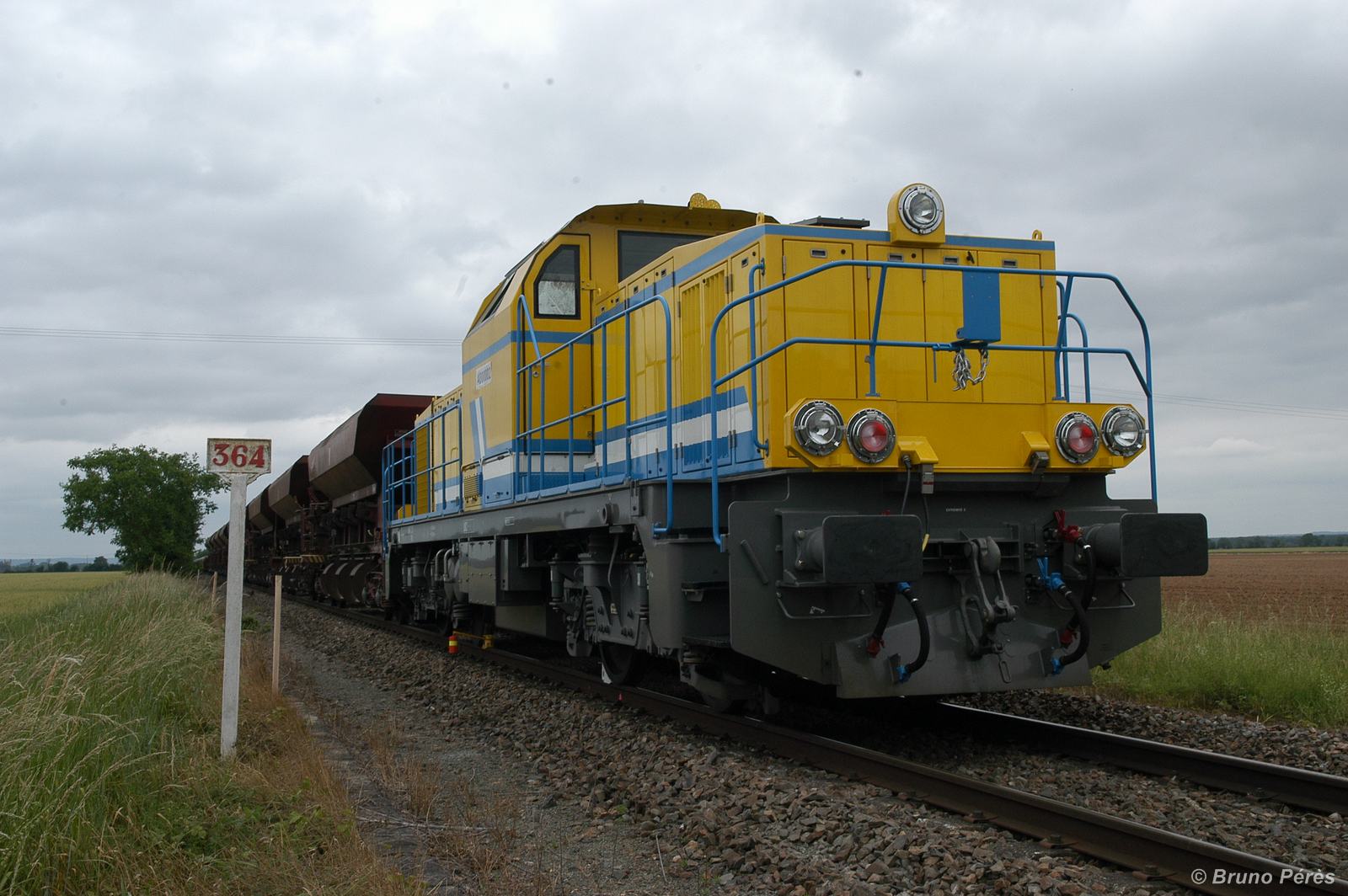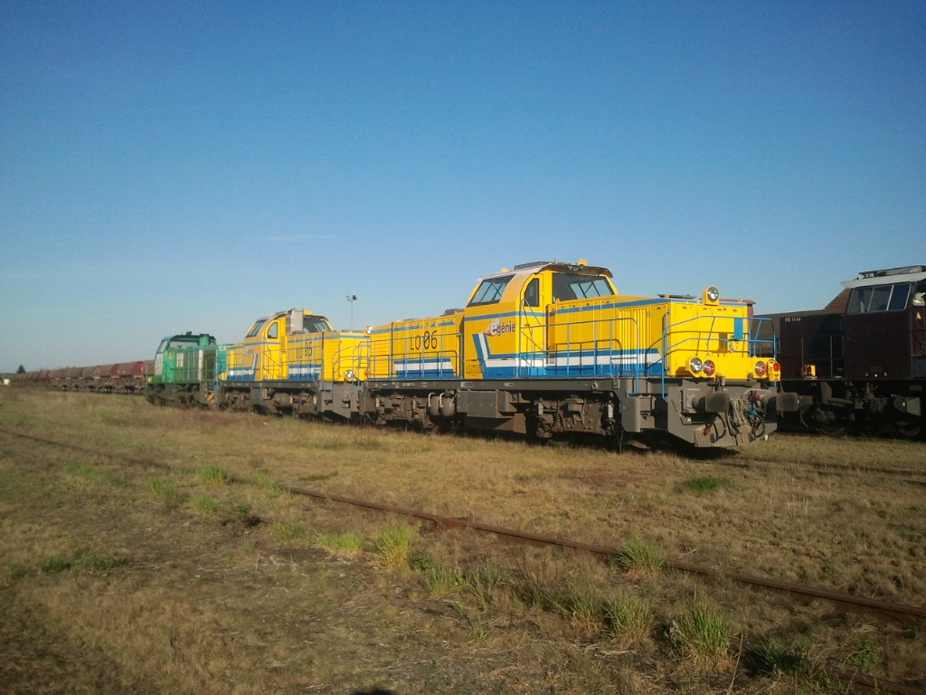 Les deux 60000 E-Génie: à droite "LO 06"=92 87 0 060 177, puis "LO 05"= -60 176, avec la CFR 1152 (Cercy-la-Tour, 19/04/2015)
