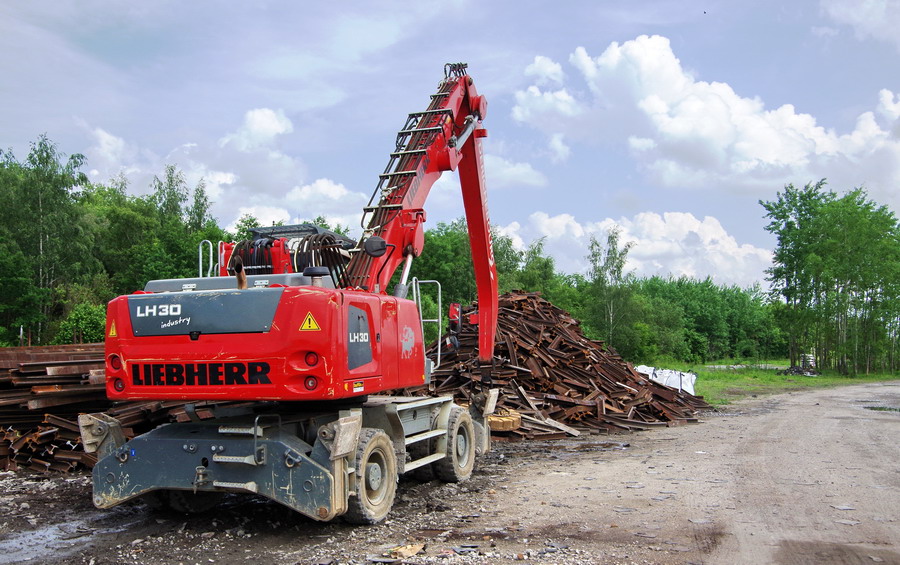 LIEBHERR LH 30 Industry Litronic n°WLHZ1200KZK083106 sur la base de travaux de la gare de Laon le 22-06-2018