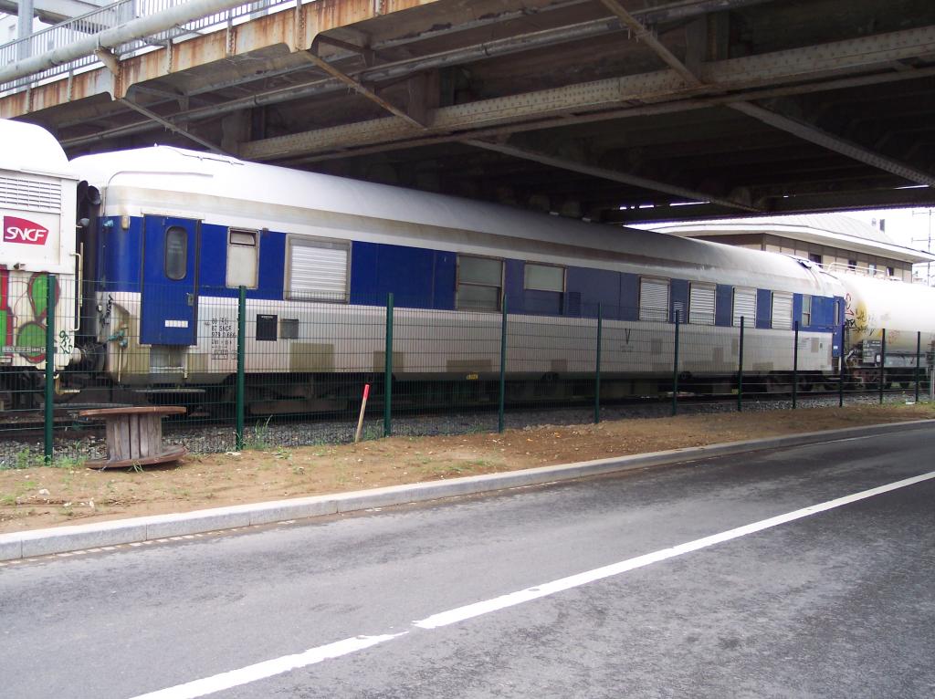 voici la voiture de cantonnement du train désherbeur vu au pied du PRS de Culoz sur une voie du faisceaux équipement