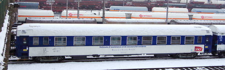Voici la voiture 80 87 979 0 506-0 Uass H55 0 - F SNCF-RO ''Véhicule d'assistance et de secours ferroviaires"