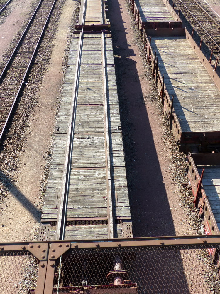 On retrouve le wagon 80 87 977 0 246-7 Uas R09 2 F SNCF-PSL avec un chargement de traverses