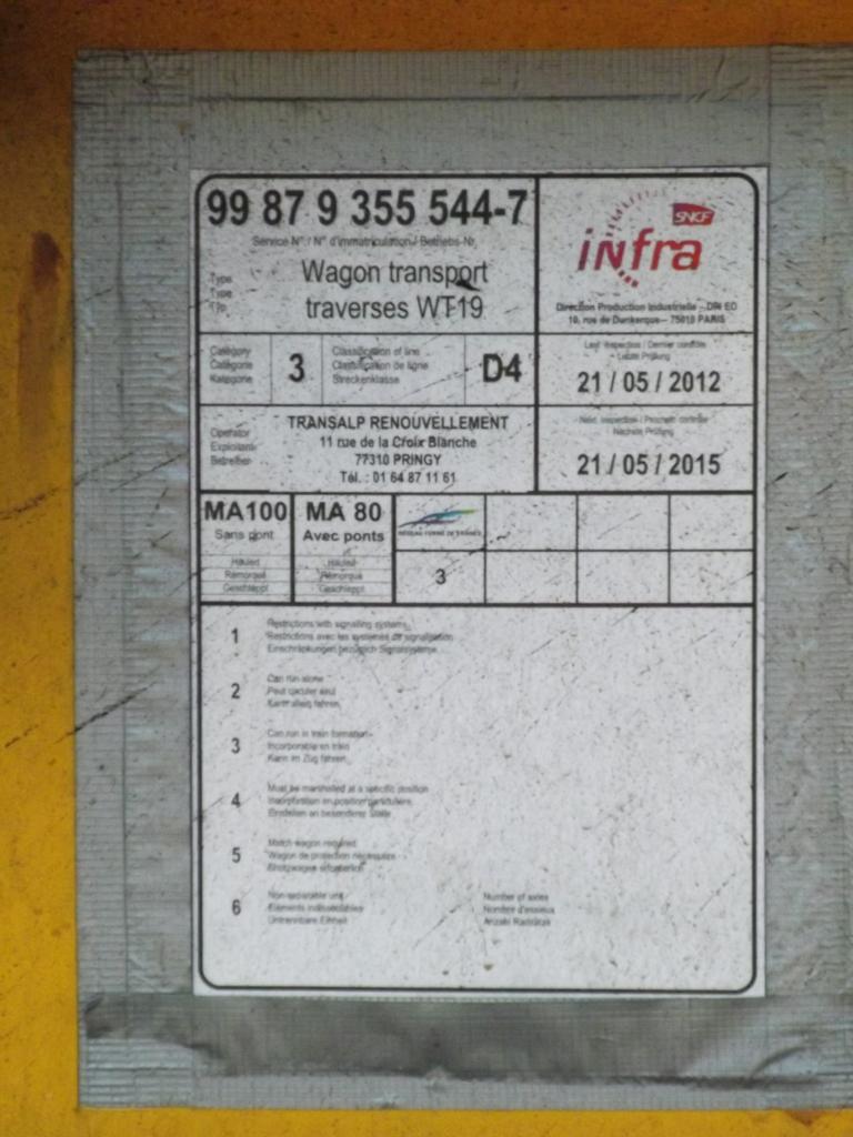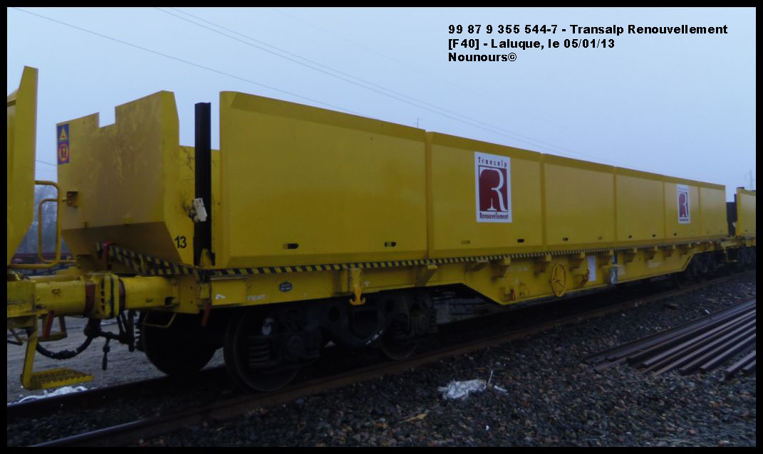 Sus scrofa a écrit:C'est bien ça, sauf erreurs de ma part, le wagon d'extrémité avec butoir et servant de benne pour les débris ferrailles, 3 wagons servant au transfert des traverses vers le P95 dont 2 wagons apte au transport du portique. Ces 3 wagons disposent d'une benne recevant les liteaux bois des paniers. Ce train devrait être en chantier en Moselle en avril / mai.